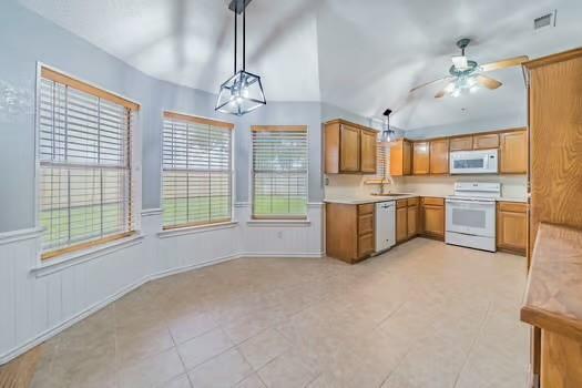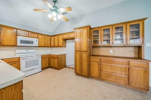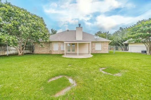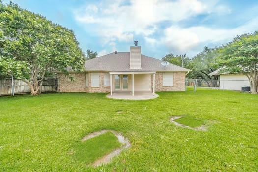 The functional layout includes a spacious kitchen that includes appliances less than 3 years old, well-sized bedrooms, and a primary suite with its own private bath. Step outside to a covered patio overlooking a fully fenced backyard, offering privacy and a great space for entertaining or play.