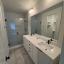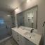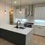 Three story condominium with the kitchen, half-bath, living room combined with the dining room is located on the second floor. The kitchen features stainless steel appliances, quartz countertops and a large peninsula island with bar seating and a farm sink. Gas cooktop. Pendant lights over island. Vinyl plank flooring is on the 1st and 2nd floors, and multiple stairs. Ensuite primary bedroom is located on the third floor. Walk-in closet in primary bathroom, separate shower and double sink vanity. Second closet is located in the primary bedroom. Ensuite second bedroom and bath is located on the third. floor. The third bedroom or flex room with a closet is located on the first floor. Two car attached garage with a garage door opener. Community green space is provided in front of the building.