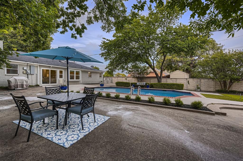 Final and best 8-24 @9pm! This beautifully maintained 4-bedroom, 2-bathroom home offers the perfect blend of modern upgrades and classic comfort. With two spacious living rooms and a built-in window seat in the dining area, the open and inviting layout is ideal for both family life and entertaining. Extra parking on the side of home and behind back yard gate, perfect for your boat or RV! The heart of the home is a fully remodeled kitchen featuring granite countertops, custom cabinetry, a farmhouse sink, and high-end KitchenAid stainless steel appliances including double ovens, a 6-burner gas stove with pot filler, and a double-door refrigerator. Enjoy the sparkling pool, resurfaced in October 2024, providing a private oasis perfect for summer relaxation and entertaining guests. The adorable sunroom is perfect in summer or winter to relax and unwind. The primary and guest bathrooms have been fully updated, while the bedrooms are arranged in a split layout for privacy. Secondary bedrooms feature plus STAINMASTER® carpet (installed April 2025), and wood-porcelain tile flows throughout the rest of the home. New roof (March 2025). Previous updates include, HVAC system with UV coil purifier, updated electrical, new insulation, hot water heater, and all-new windows, doors, and trim. Smart and energy-efficient features include an Ecobee thermostat, ceiling fans in every room, a full security system with cameras and Ring doorbell, and a dedicated Christmas light setup. Outside, enjoy custom landscaping, a large yard with mature trees, a built-in storage shed, full sprinkler system, and a unique hot and cold outdoor faucet perfect for pet washing. With thoughtful upgrades throughout, this home offers turnkey living with timeless appeal. Seller is Owner-Agent.