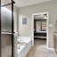 BACK ON THE MARKET AT NO FAULT OF THE SELLERS, buyer contingency fell through. Recent price improvement. MEDIA ROOM EQUIPMENT AND FURNITURE INCLUDED (seating for 4, blue ray player, screen, receiver, speakers and projector - valued at $12,000) Gorgeous 2-story in Magnolia of Lantana! Versatile and spacious floor plan with two bedrooms downstairs and two upstairs, perfect for privacy and functionality. The spacious primary suite includes a large walk-in closet and serene ambiance. Each bedroom is thoughtfully placed for comfort and separation. A lovely kitchen with granite countertop island opens seamlessly to the cozy living room, which features a soaring ceiling and fireplace, creating a warm and inviting space for family and guests.