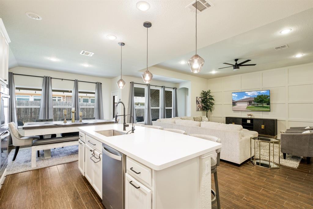 The kitchen features granite countertops, a gas range, a spacious pantry, and a naturally bright dining area framed by three large windows. The living area flows seamlessly from the kitchen, creating a warm, central gathering space. (Search the address on YouTube for a video walkthrough!)