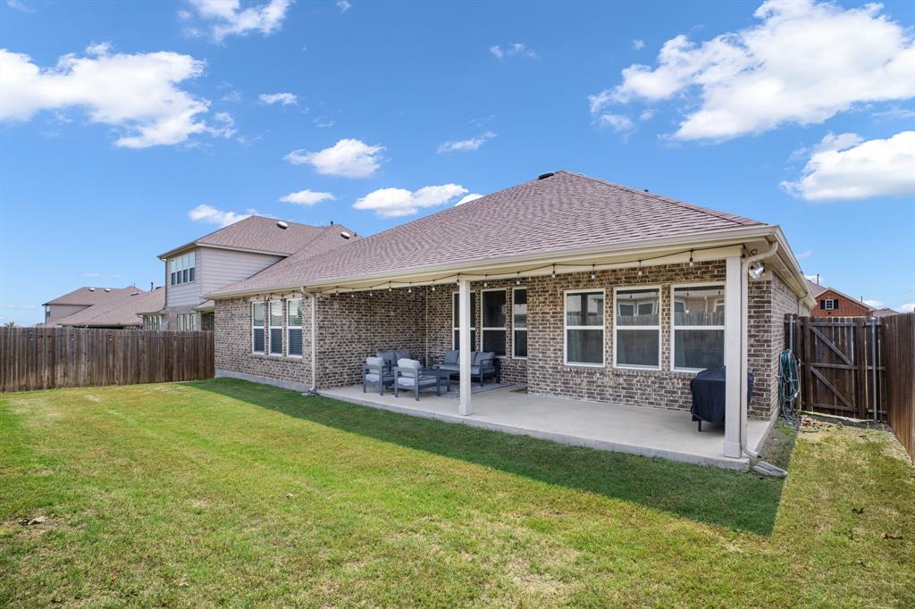 Upstairs, the primary suite provides a peaceful retreat, while three additional bedrooms offer flexible options for guests, a home office, or playroom. Step outside to a covered back patio and a generously sized yard—ideal for grilling, relaxing, or enjoying time with family.