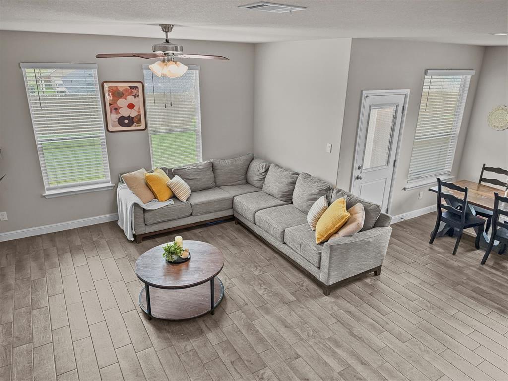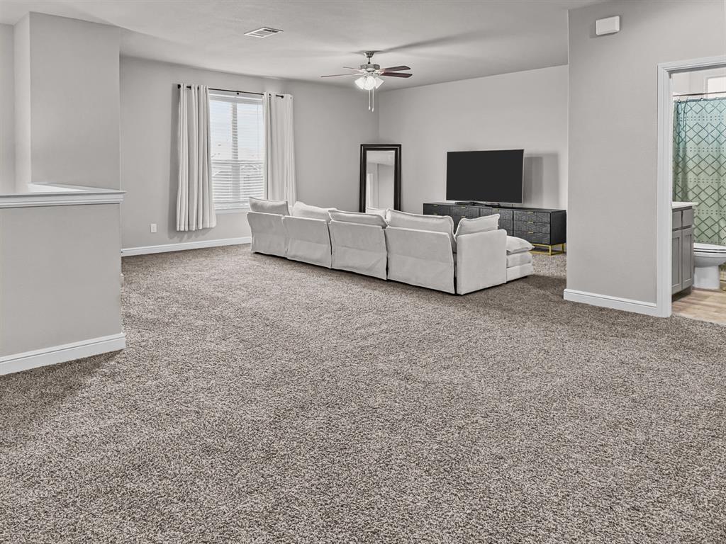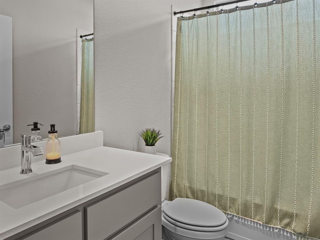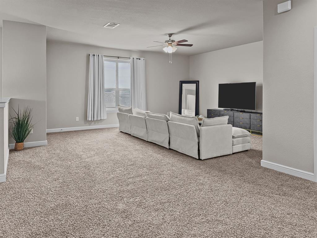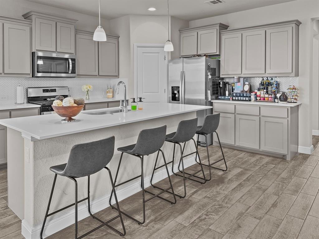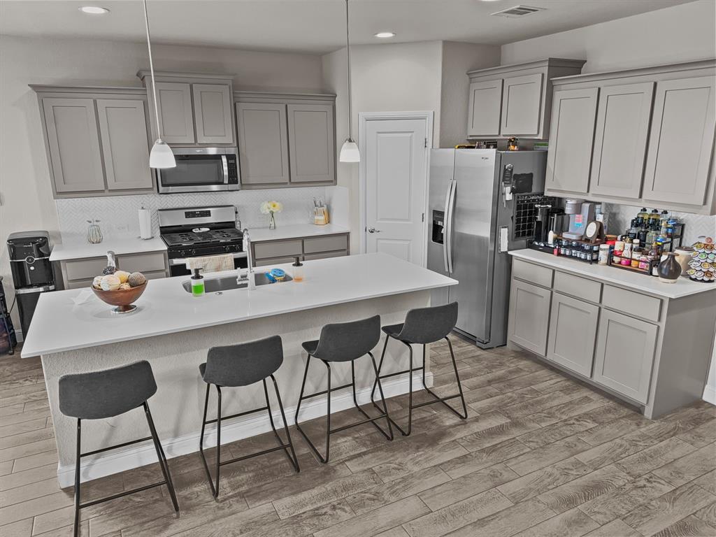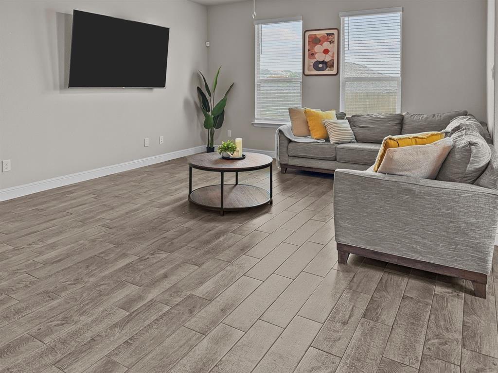 Welcome home to this spacious 5-bedroom, 4-bathroom beauty in the sought-after Bluestem master-planned community, located in award-winning Northwest ISD. Offering $4,000 to closing cost, The Fridge, a 75 inch TV and 55 inch TV to convey. With two full bedrooms and 2 full bathrooms downstairs, this layout is perfect for guests or multigenerational living. Upstairs, you’ll find three more bedrooms, two full bathrooms, a generously sized game room, and a loft area—plenty of space for everyone to spread out and relax. The heart of the home is the open-concept living and dining area that flows effortlessly into the chef-inspired kitchen, featuring quartz countertops, stylish tiled backsplash, stainless steel appliances, a gas range, pendant-lit island, and a large walk-in pantry. Retreat to the luxurious primary suite complete with a dual-sink vanity, oversized walk-in shower, and a spacious walk-in closet. Other upgrades include: tankless water heater, designer extended tile flooring, smart home technology, partial gutters, front coach lighting, and more. Step outside to enjoy the covered back patio and fully fenced landscaped backyard with sprinkler system—ready for summer BBQs or quiet evenings. Enjoy all the upcoming amenities Bluestem will offer: a resort-style pool, cabana, playgrounds, dog park, hiking trails, parks, and even a stocked fishing pond right at the entrance. Take advantage of this homes FHA assumable loan with a very low 5.37 percent interest rate!