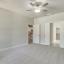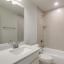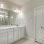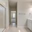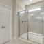 Tucked away on the first floor, the private primary suite serves as a tranquil retreat, complete with a dual vanity, elegant 12x24 tile accents, a large glass-enclosed shower, and a generous walk-in closet.