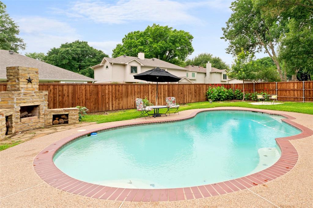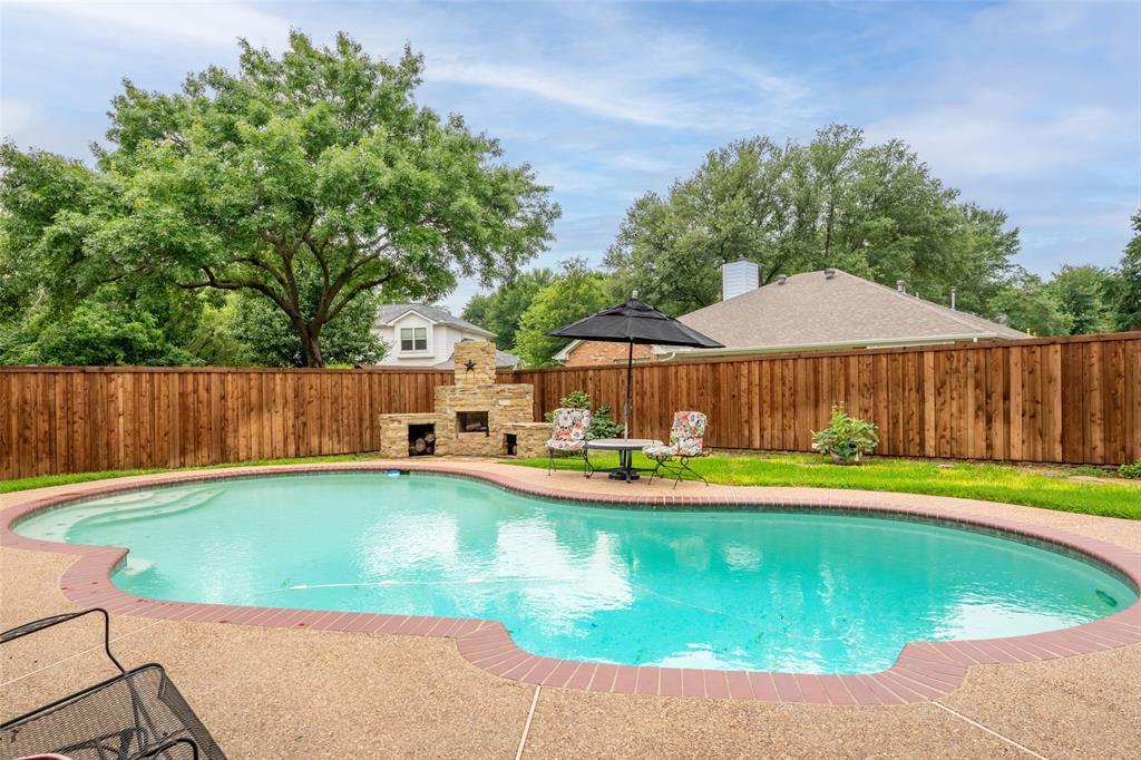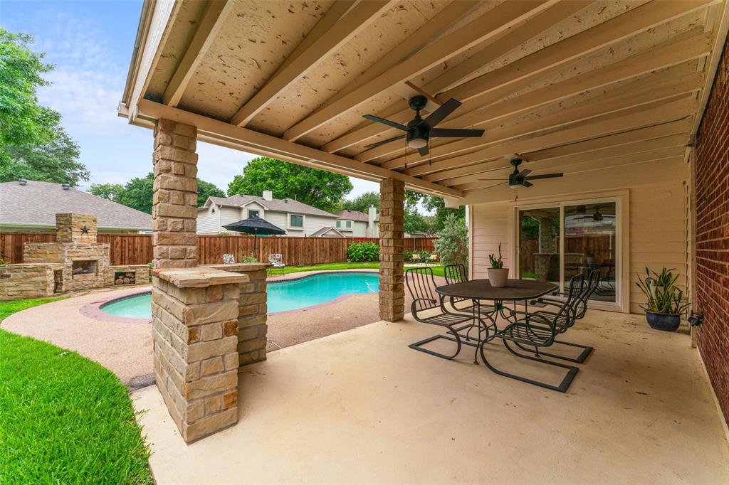 Just a short walk to scenic nature trails and nearby parks. This beautiful four bedroom home offers the perfect blend of comfort and outdoor living. Host unforgettable summer pool parties in the sparkling oversized pool, enjoy a spacious backyard, and relax under the covered patio, or cozying up to the beautiful outdoor stone fireplace. Inside, you'll find an open floor plan with two large living areas perfect for entertaining and relaxing. Enjoy cooking in the spacious kitchen with an abundance of counter space and storage. Seller is Cartus Relocation Corporation