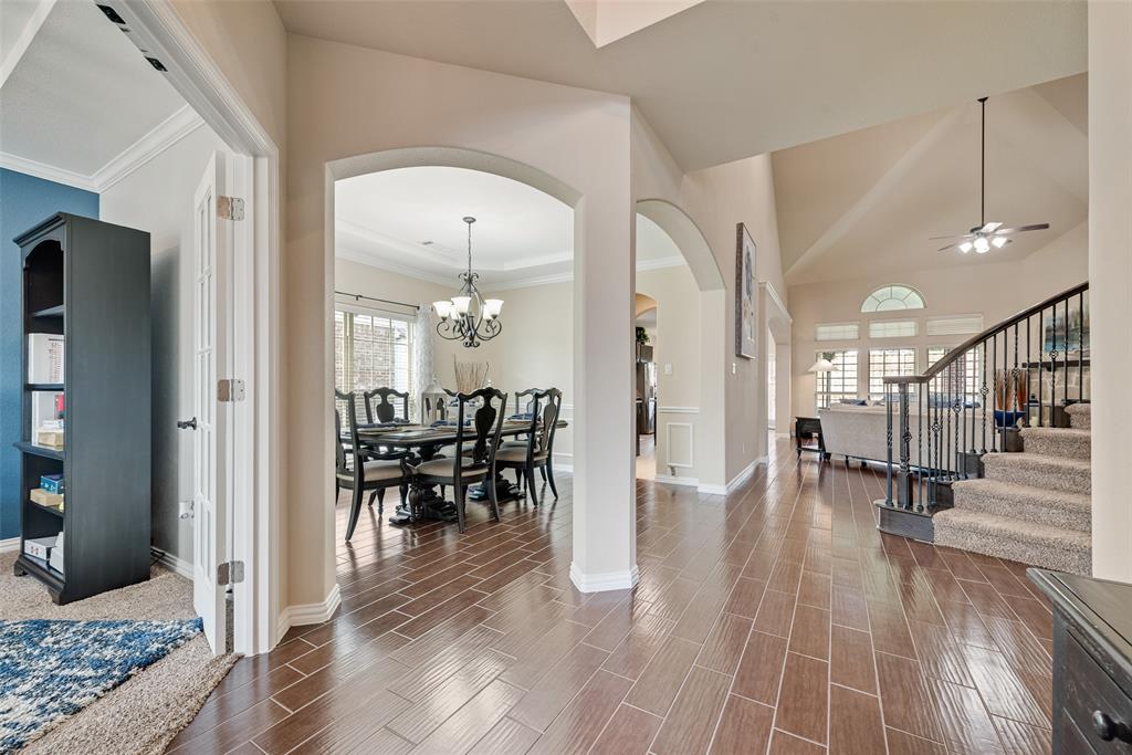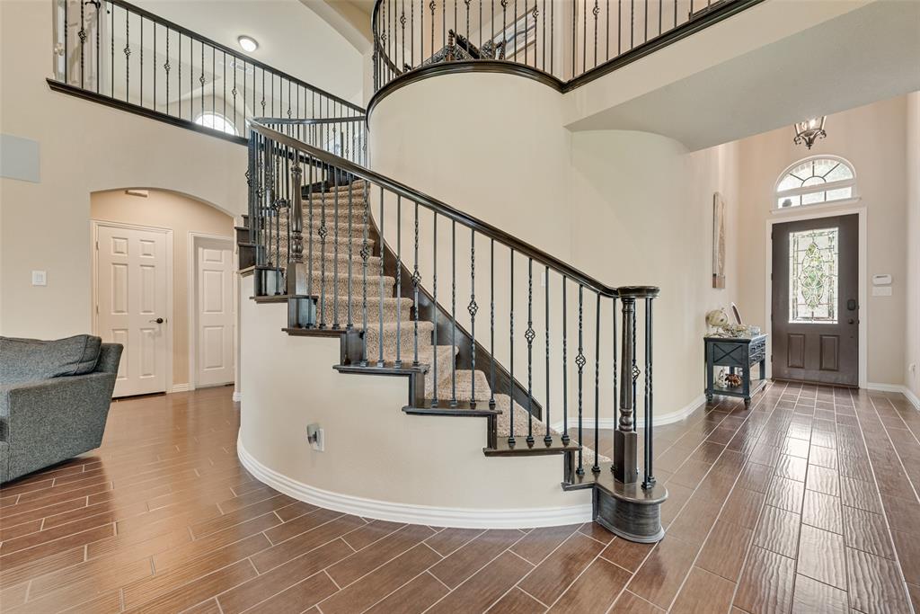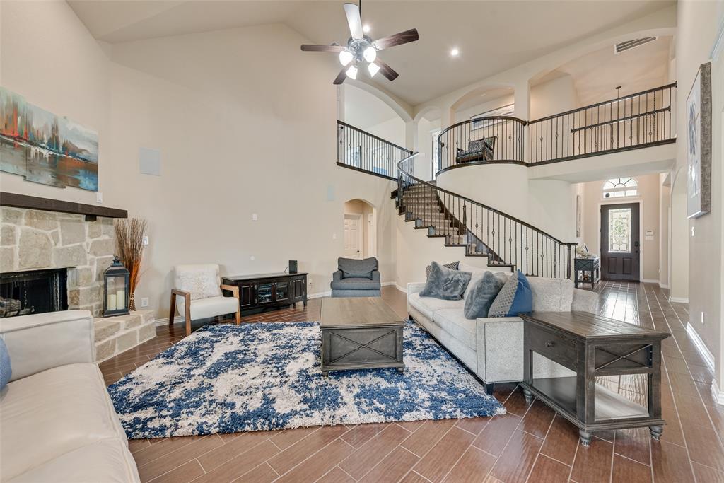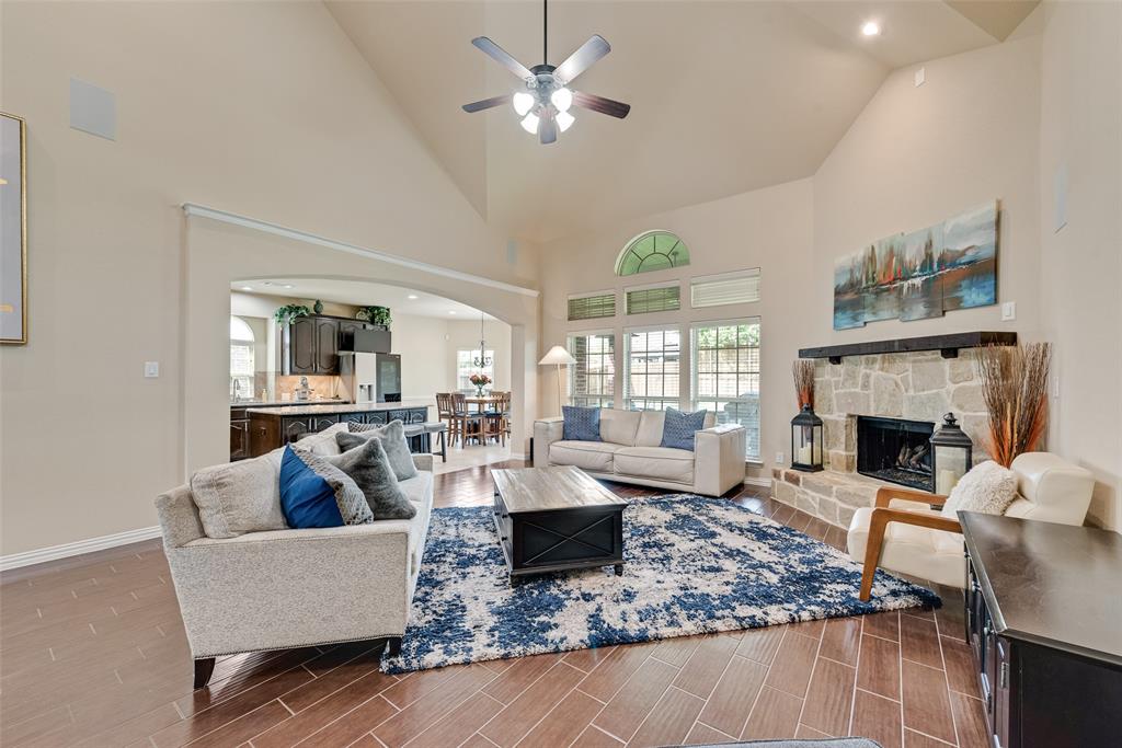From the moment you step inside, you’ll be greeted by soaring ceilings, wood-look ceramic tile flooring, and an open-concept design ideal for both everyday living and grand-scale entertaining. The chef’s kitchen opens seamlessly to the living area and features modern finishes, ample cabinetry, and generous counter space. Multiple living areas provide flexibility for relaxation, recreation, or hosting gatherings, while the formal dining room adds an extra touch of sophistication.