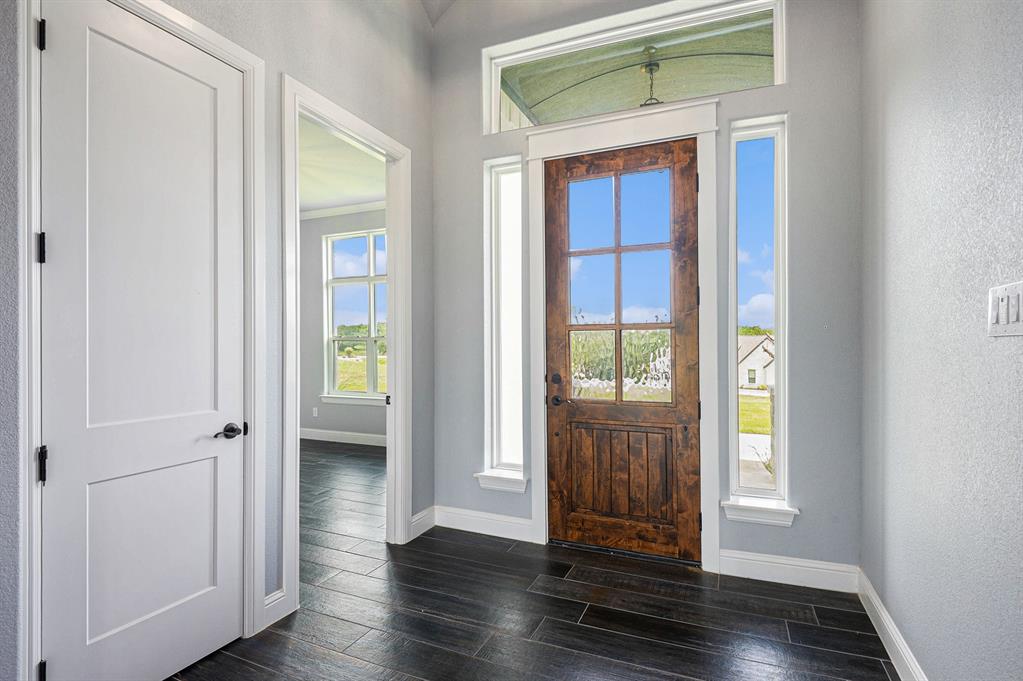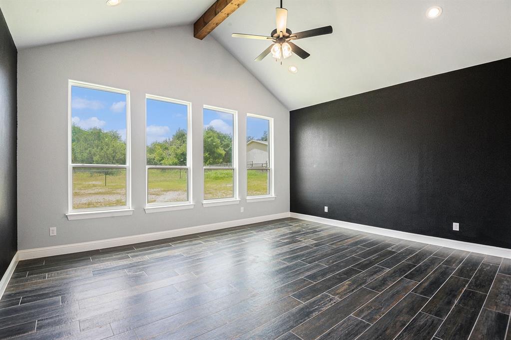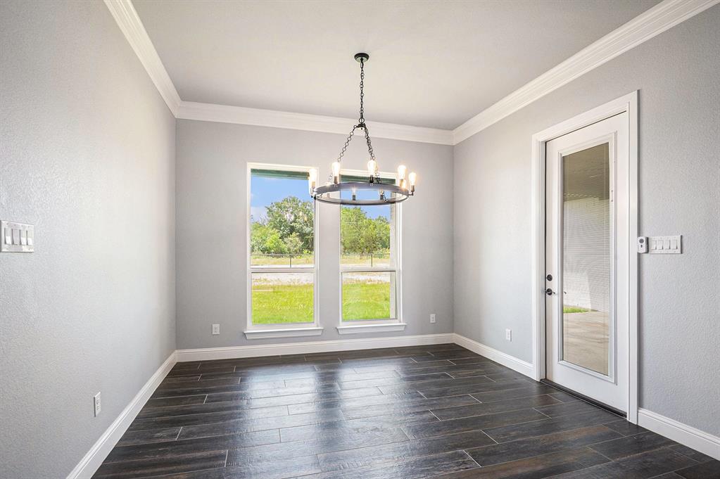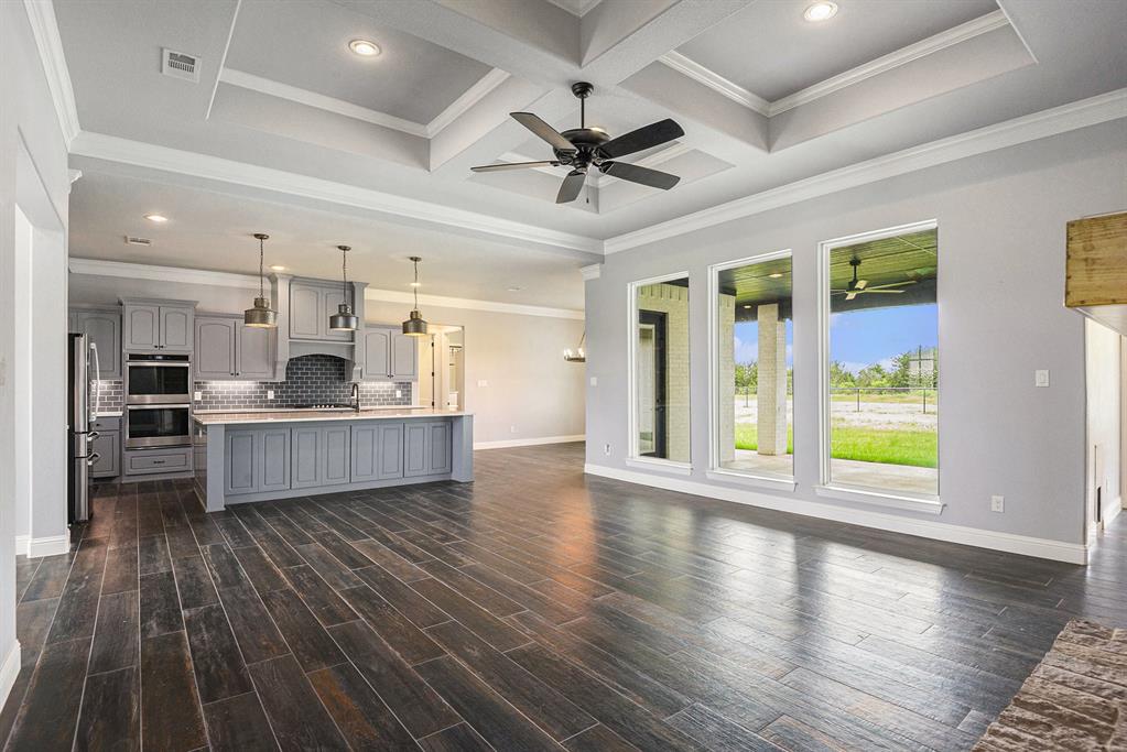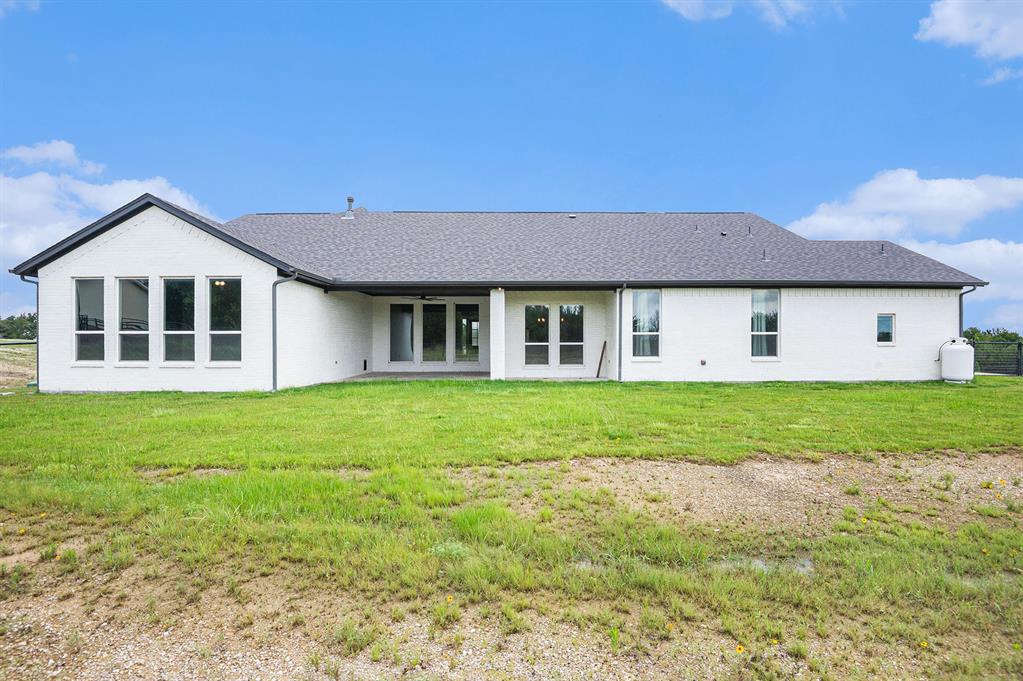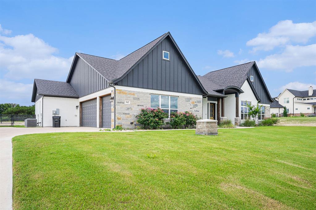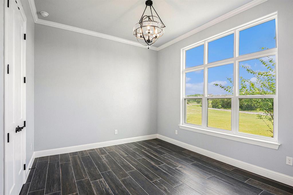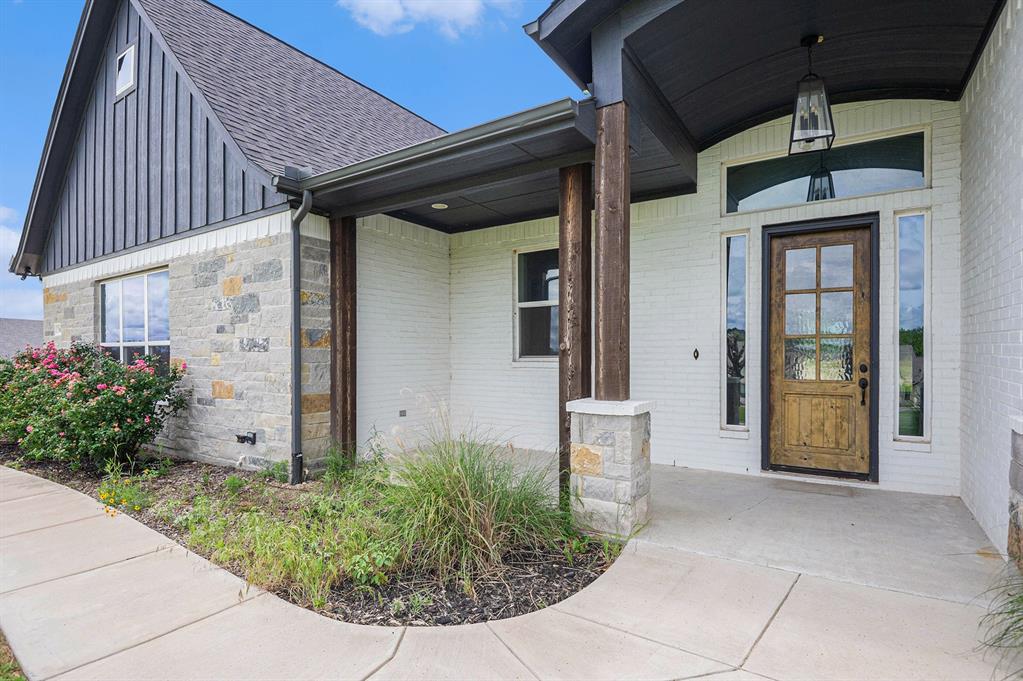 Located just minutes from FM920 and set outside the city limits, this stunning home sits on 2 acres, offering peaceful living with modern convenience. The spacious fenced backyard and covered patio create the perfect space for relaxing or entertaining, while the side-entry 3-car garage adds functionality and curb appeal. Inside, you'll find 4 bedrooms, 3 full bathrooms, and a beautifully designed media room with a vaulted ceiling, wood beam accent, and recessed lighting. The main living area showcases coffered ceilings and flows seamlessly into the open-concept kitchen and dining area. The kitchen features a large island with breakfast bar, an expansive walk-in pantry, and direct access to the dining area and living room—ideal for gatherings of any size. The primary suite is a true retreat with tray ceilings, recessed lighting, a soaking tub, oversized glass-framed shower, dual vanities, and a walk-in closet complete with built-in shelving. Each of the additional bedrooms offers generous space and access to well-appointed full baths. With 2 acres of space and a thoughtfully designed layout, this home blends style, comfort, and functionality—perfect for everyday living or hosting in style. Discounted rate options and no lender fee future refinancing may be available for qualified buyers of this home.