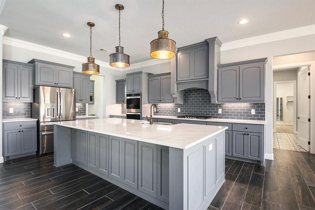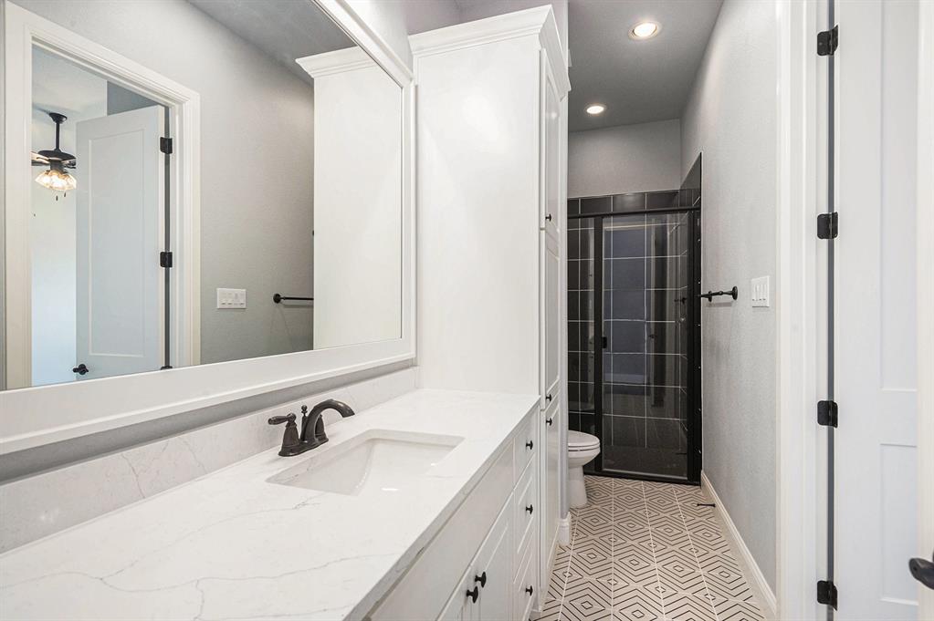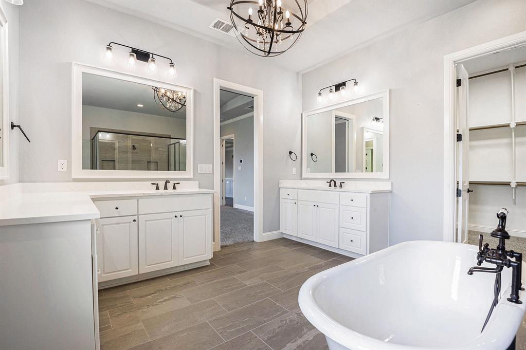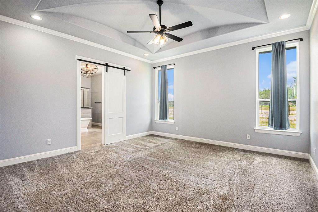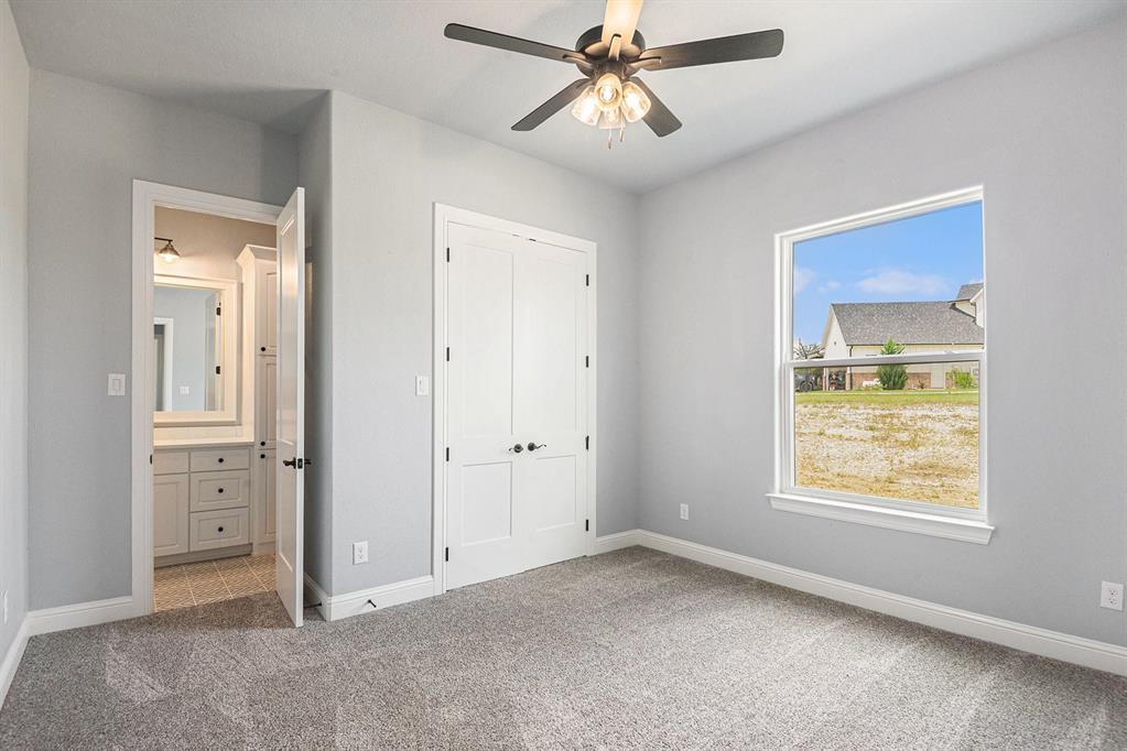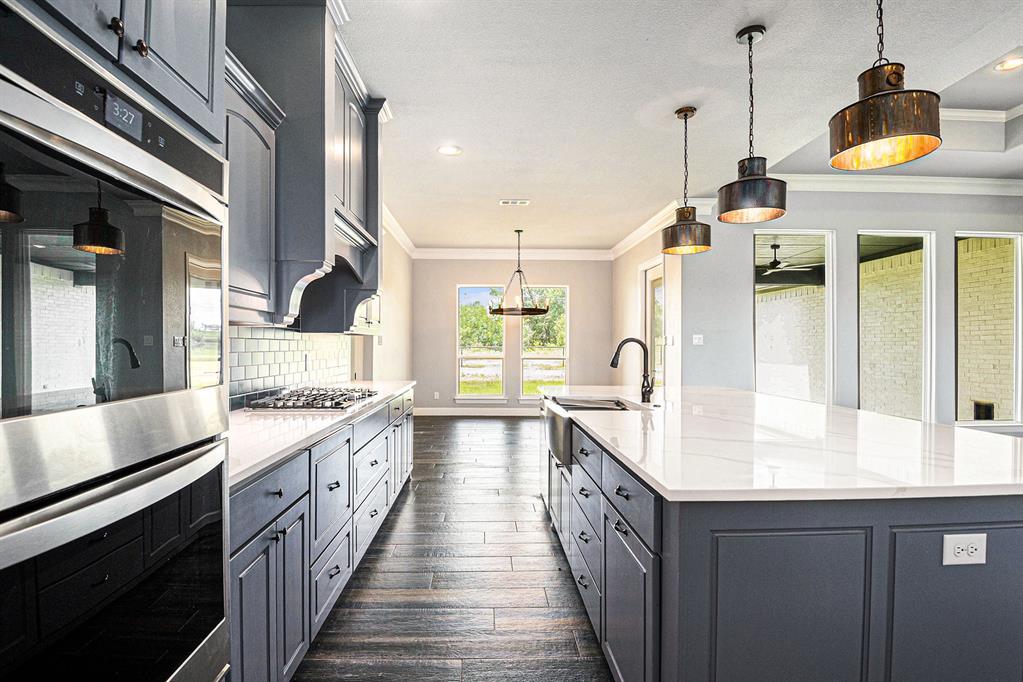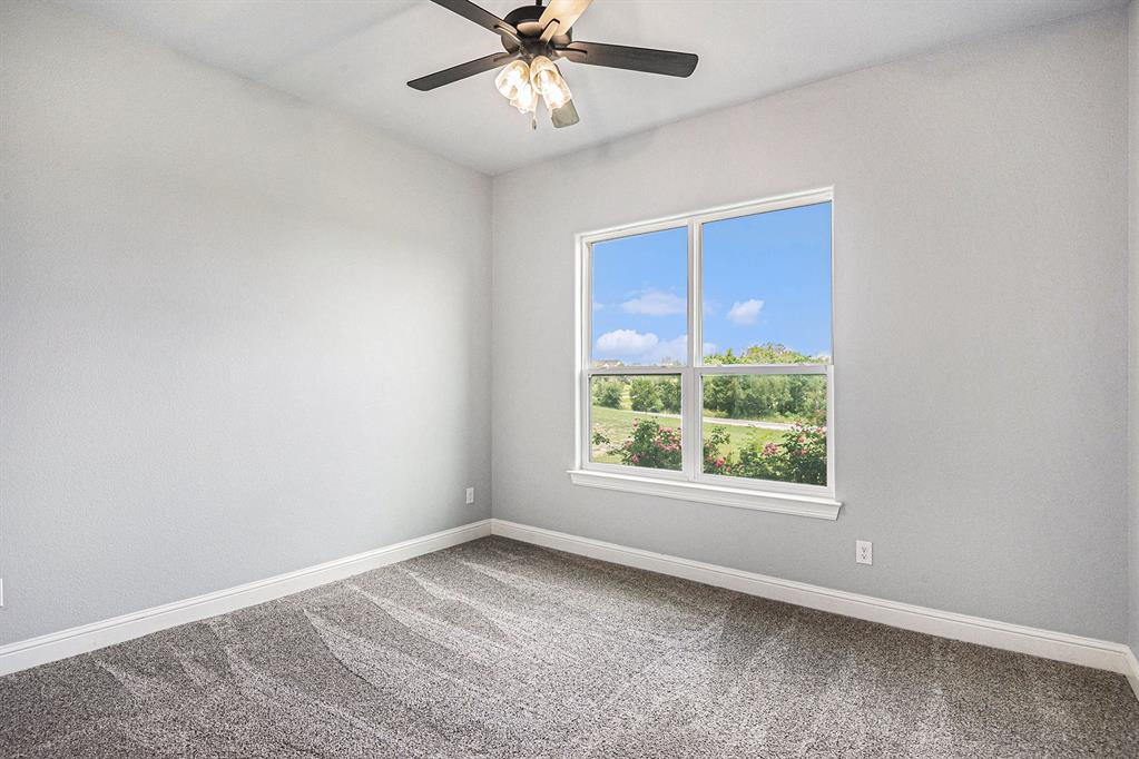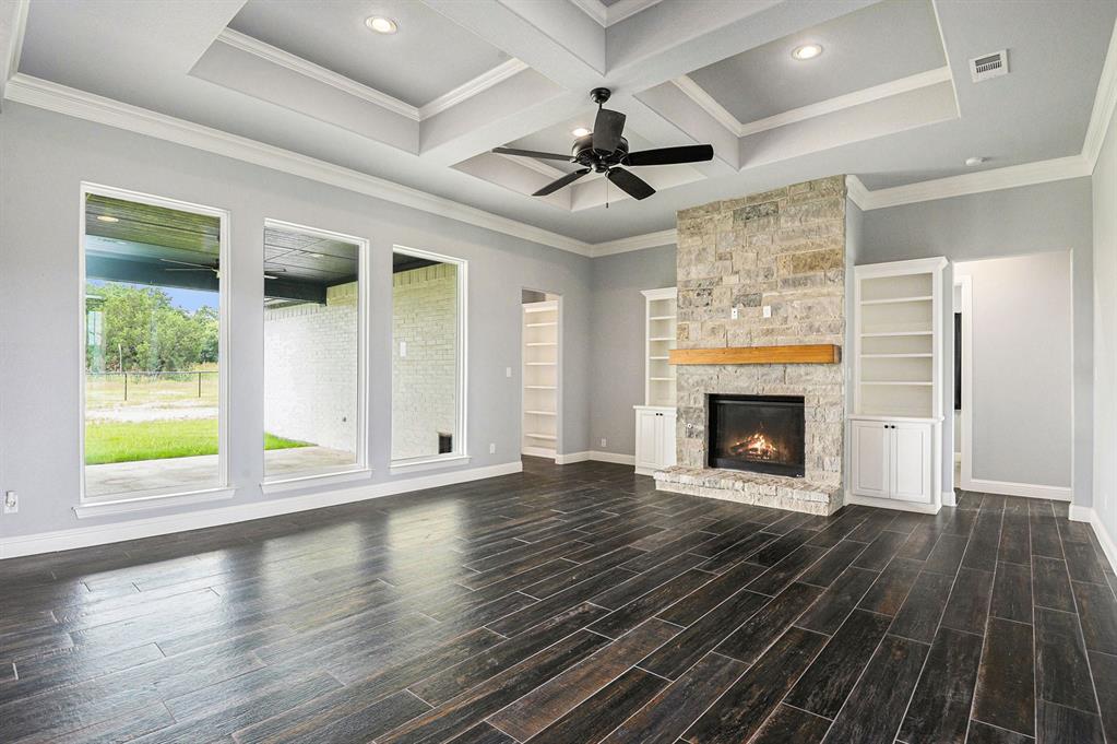 Located just minutes from FM920 and set outside the city limits, this stunning home sits on 2 acres, offering peaceful living with modern convenience. The spacious fenced backyard and covered patio create the perfect space for relaxing or entertaining, while the side-entry 3-car garage adds functionality and curb appeal. Inside, you'll find 4 bedrooms, 3 full bathrooms, and a beautifully designed media room with a vaulted ceiling, wood beam accent, and recessed lighting. The main living area showcases coffered ceilings and flows seamlessly into the open-concept kitchen and dining area. The kitchen features a large island with breakfast bar, an expansive walk-in pantry, and direct access to the dining area and living room—ideal for gatherings of any size. The primary suite is a true retreat with tray ceilings, recessed lighting, a soaking tub, oversized glass-framed shower, dual vanities, and a walk-in closet complete with built-in shelving. Each of the additional bedrooms offers generous space and access to well-appointed full baths. With 2 acres of space and a thoughtfully designed layout, this home blends style, comfort, and functionality—perfect for everyday living or hosting in style. Discounted rate options and no lender fee future refinancing may be available for qualified buyers of this home.