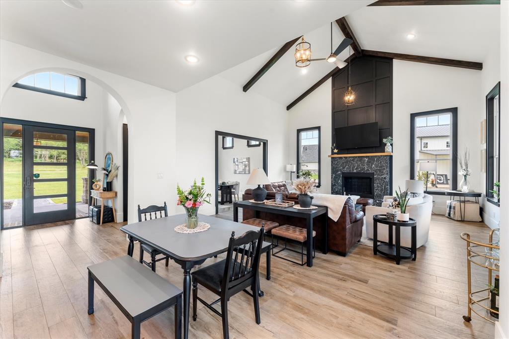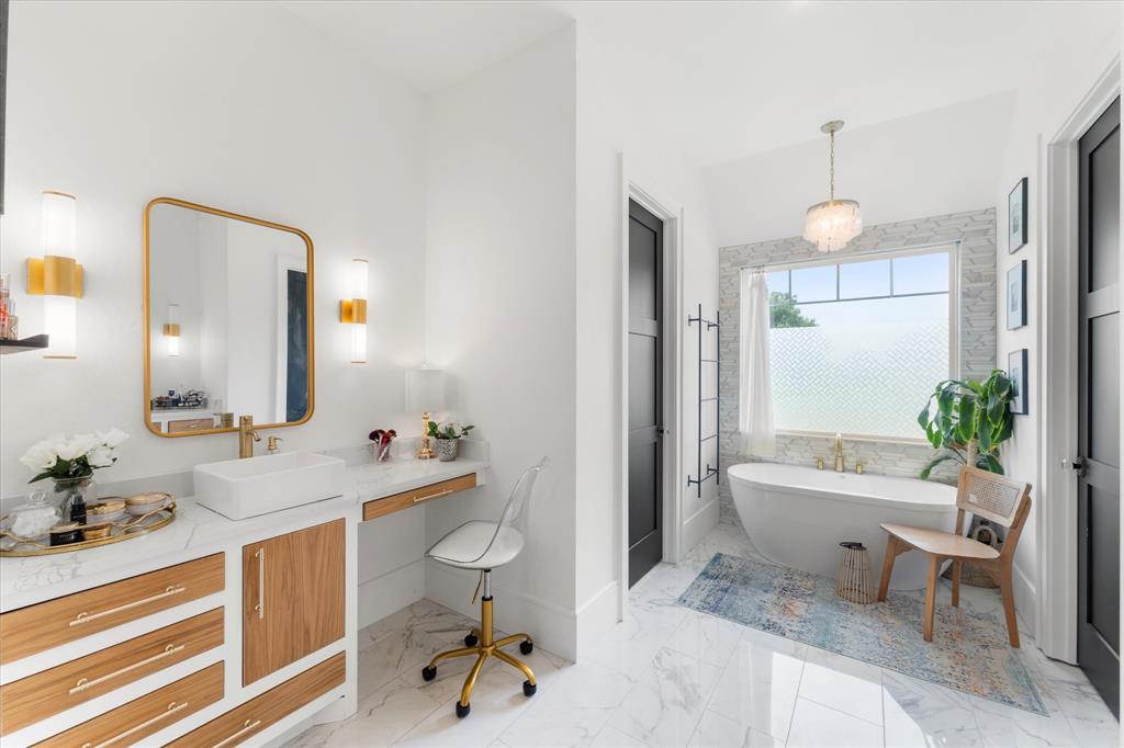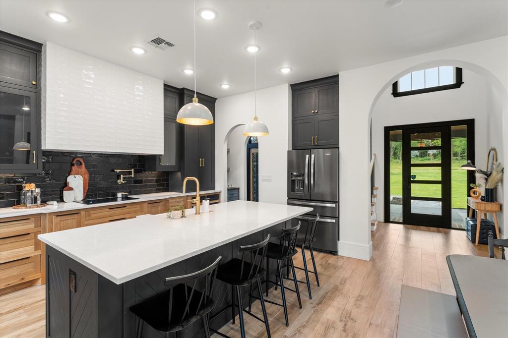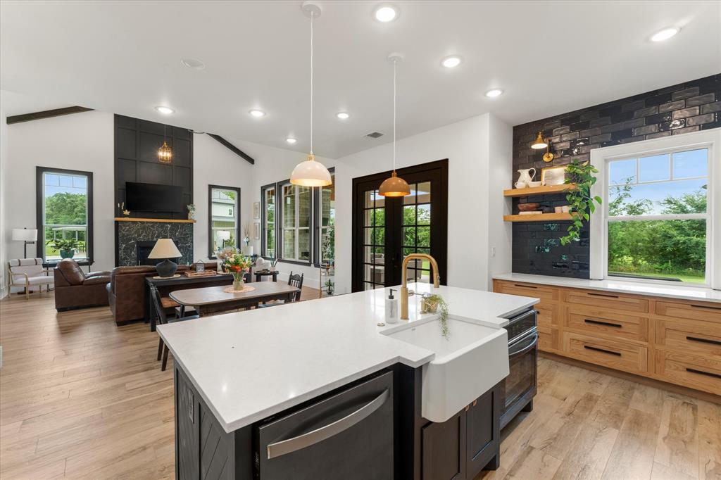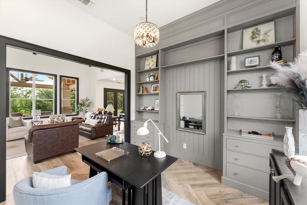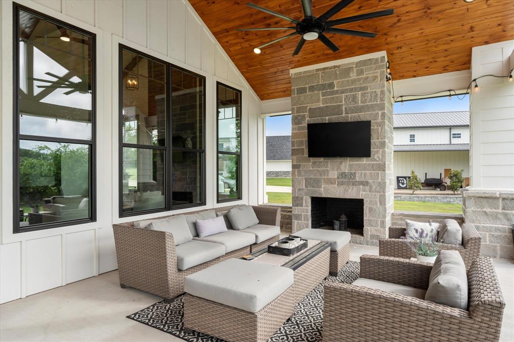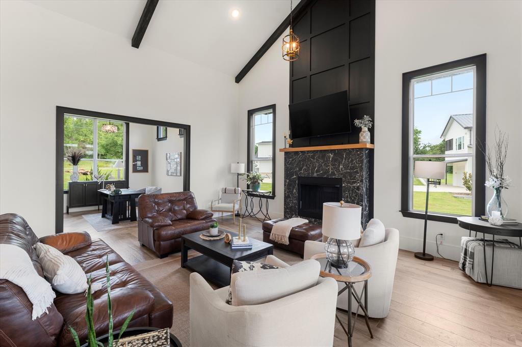 Built in 2022 and beautifully decorated throughout, this 4-bedroom, 3.5-bath home is nestled on a scenic lot with gorgeous views and abundant natural light from expansive windows. Located in a sought-after golf course community, this home offers an ideal blend of luxury and comfort. The spacious primary suite is thoughtfully designed with dual vanities, separate closets, a soaking tub, and a separate shower. It also opens directly to the outdoor living center—complete with a cozy fireplace—creating a relaxing retreat perfect for morning coffee or evening wind-downs. Upstairs, you’ll find the kids’ bedrooms and baths, offering privacy and space for the whole family. A dedicated office or study provides the perfect setting for remote work or quiet reading. The heart of the home is a stylish open-concept kitchen with custom cabinetry, a walk-in pantry, and extra storage tucked neatly under the stairway. Every detail has been considered, from the tasteful finishes to the well-planned layout. Enjoy elegant living inside and out in this impressive home just minutes from the golf course, dining, and community amenities. This is country club living at its finest—schedule your showing today!