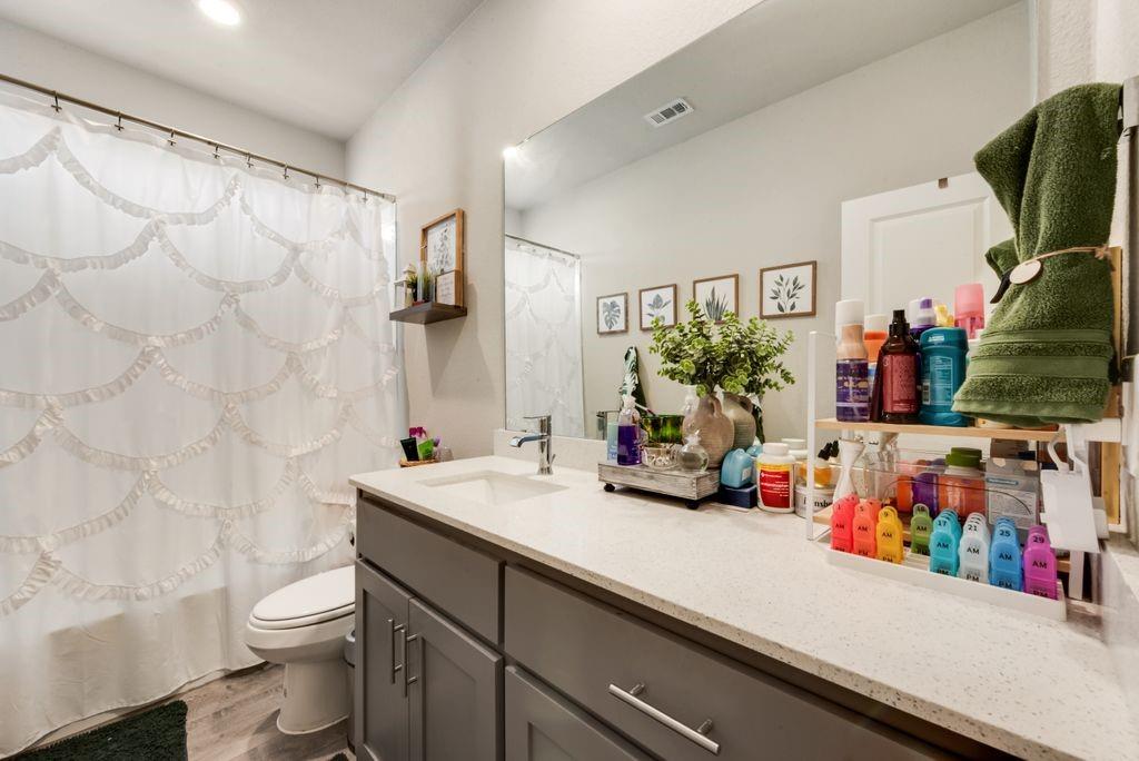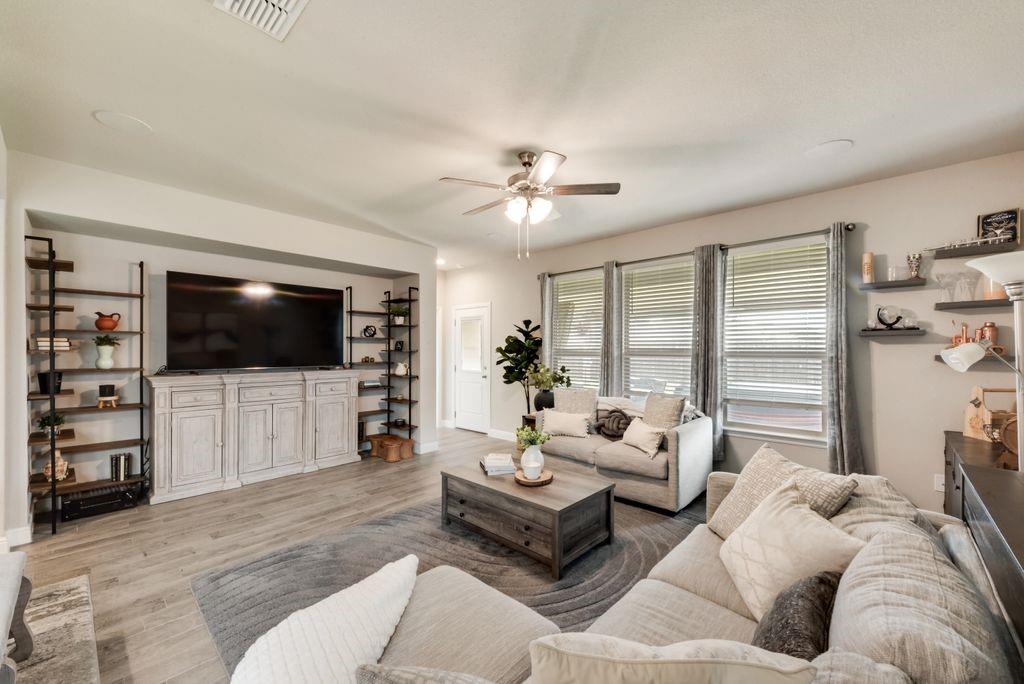 Enjoy outdoor living in the fenced backyard, complete with a covered patio and built-in stone fireplace, . The owners also had added special electrical plug to support a hot tub on the extended patio – & storage shed conveys! Two-car attached, front-facing garage with driveway access, epoxy flooring, drop station, custom storage & shelves-provides ample parking & storage! Located in a vibrant community with access to a pool, clubhouse, and scenic jogging-biking paths, this home combines comfort, convenience, and lifestyle.