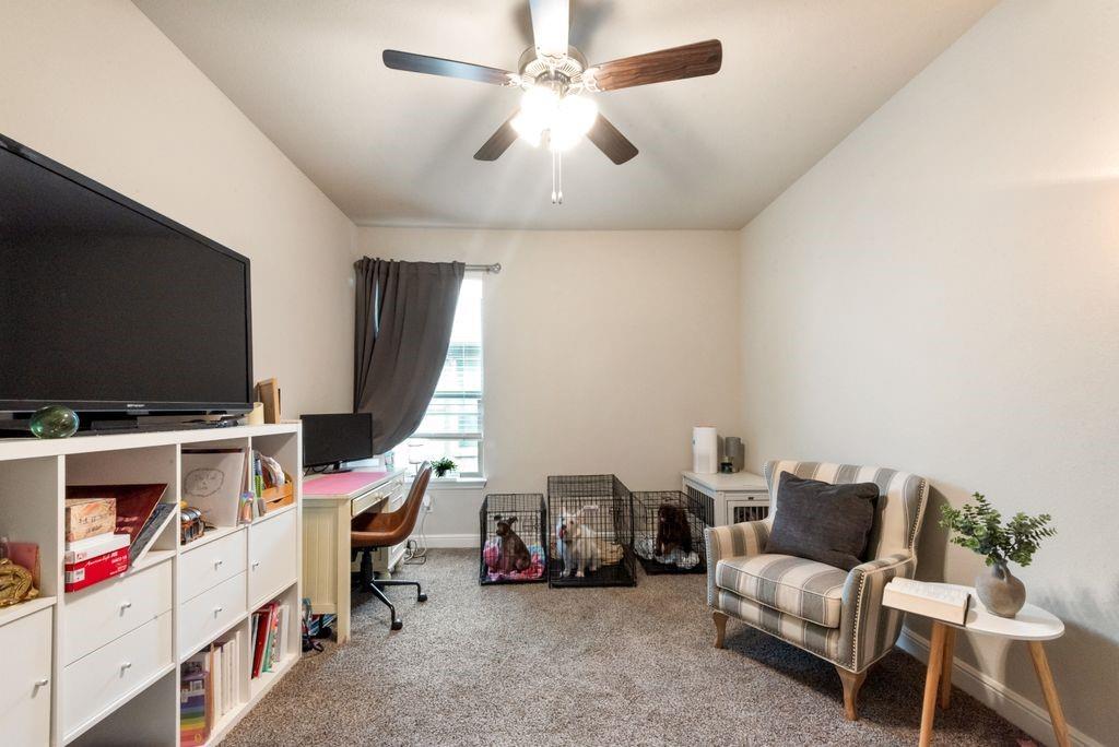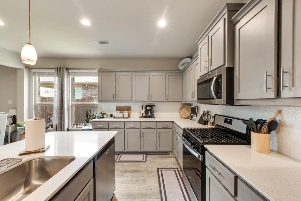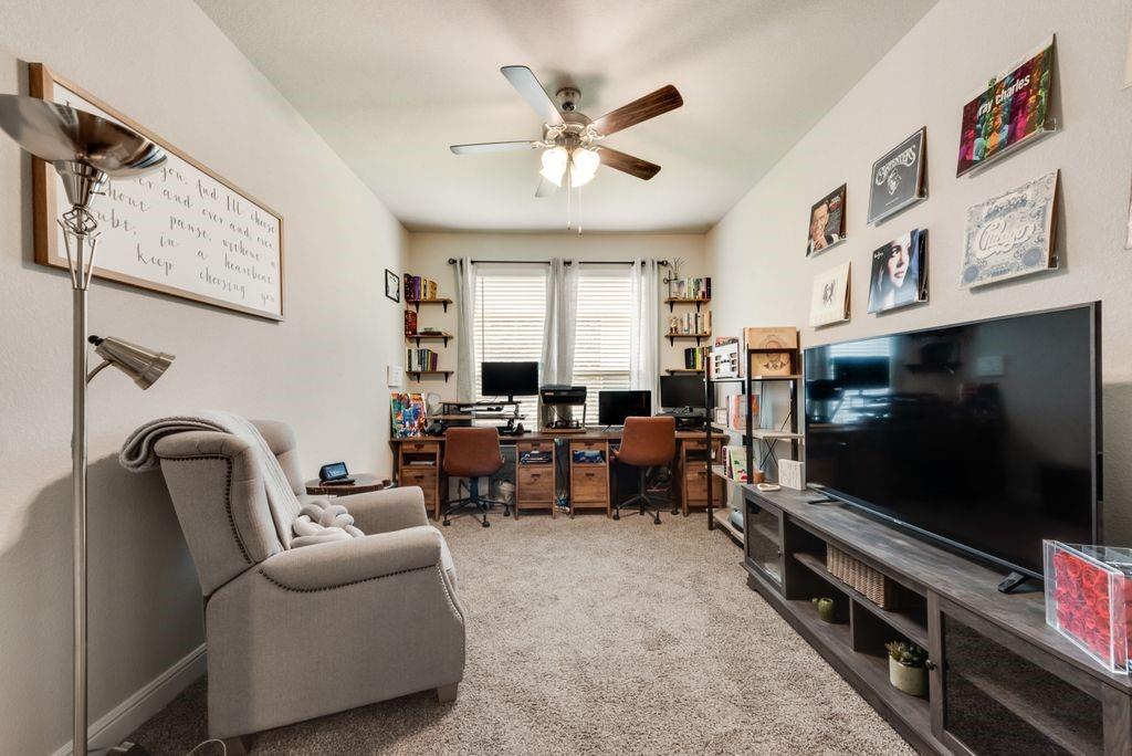 Owner has over $450,000 into this amazing Northwest ISD home & dream backyard ideal for year-round entertaining! Spacious and full of natural light, this beautiful 4-bedroom, 2-bath home plus an office offers an open floor-plan. The kitchen features a large island, built-in microwave, gas range, refrigerator, and garbage disposal—ideal for cooking and entertaining. Primary has a sit in area, Spa like ensuite fully loaded with bench in oversized shower, elevated sinks, WI Closets & water closet! Built In Interior & Exterior Surround Sound Speaker System, Built In Pest Control System, Wired Security System * Flooring: Wood-look plank tile throughout common areas, cozy carpet in bedrooms*Wood-look blinds throughout, custom shelving & curtains convey*
