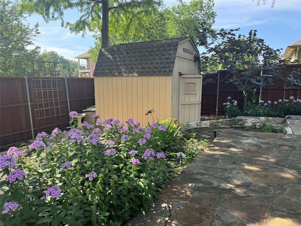 This Charming One-Story Continental Home Has Great Drive-Up Appeal, Towering Trees, Front and Back. Open Living and Kitchen Plan Has Many Upgraded Qualities Only Found in a Custom Home. Living Has Three Floor to Ceiling Windows Overlooking the Yard. Flagstone Patio with Ceiling Fan and Roller Shade. Rounded Corners, Art Niches, Floored Attic Over Garage, Engineered Wood Floors. Bordeaux Plan Offers Desirable Kitchen with Three Large Windows Across Expansive Upper Tier Granite Counters Featuring Blanco Farm Sink and Huge Island. Current Trend Large Oblong Tile Floor. Preferred Gas Cooktop. Four Bedrooms, Two Baths, Two Living and Two Dining Areas. Split Bedrooms. PAINT AND CARPET IN PROCESS. Recent Updates: HVAC – 2024, Roof – 2023, Water Heater – 2020, Windows Replaced – 2018. 2 Storage Buildings.