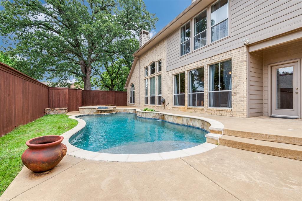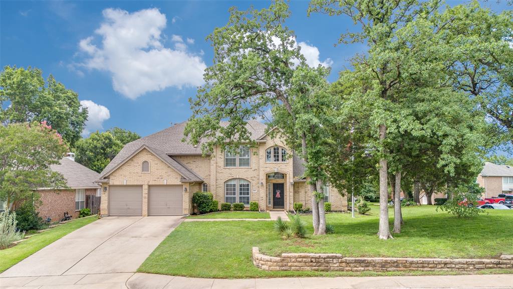 Situated on an expansive .275 acre corner lot with beautiful landscaping and soaring trees, this stunning 4-bedroom, 3.5 bathroom home offers 3,323 square feet of functional living space, blending classic charm with modern updates. Step inside to discover a bright, open-concept layout featuring elegant formal dining and living areas. The formal living room has windows overlooking the inviting pool area and is anchored with a stately see through fireplace connected to a cozy family room offering the warmth of this feature to both rooms. The gourmet kitchen equipped with granite countertops, stainless steel appliances, a large island, and ample cabinetry—perfect for everyday living and entertaining. The master suite is a true retreat featuring its own fireplace and offering a luxurious bathroom with dual sinks, oversized jetted tub, and a spacious walk-in closet. Upstairs additional bedrooms provide comfortable accommodations for family or guests, while a spacious game room adds flexibility for a home office, media room, or play area. Outside, the pool-spa combo has water features creating a private oasis ideal for relaxing or hosting gatherings. Located within the highly rated Grapevine-Colleyville ISD and just minutes from Grapevine Lake, parks, shopping, dining, and major highways, this home offers the perfect combination of comfort, convenience, and community. This is an exceptional property!