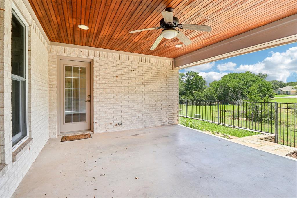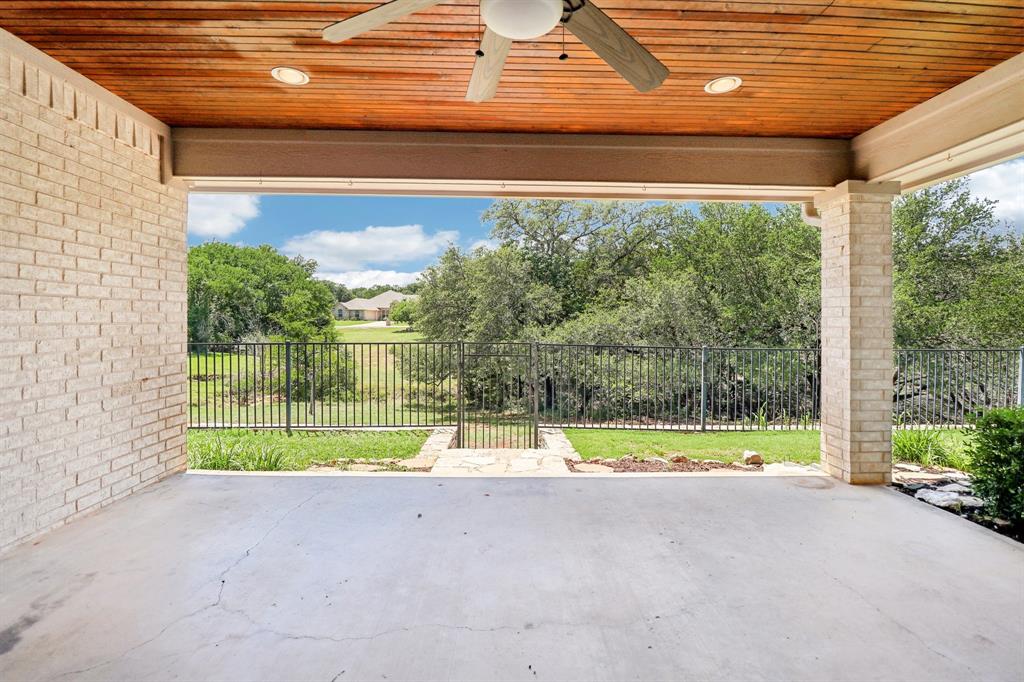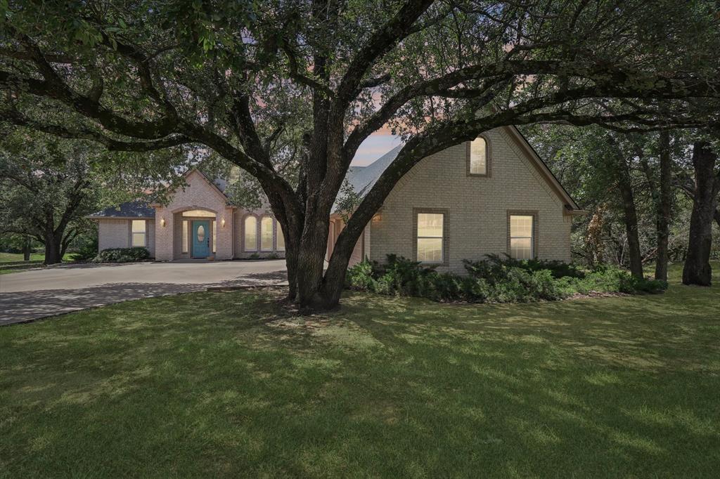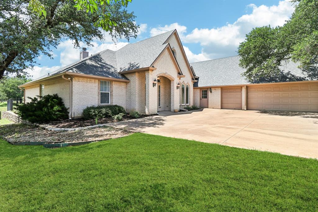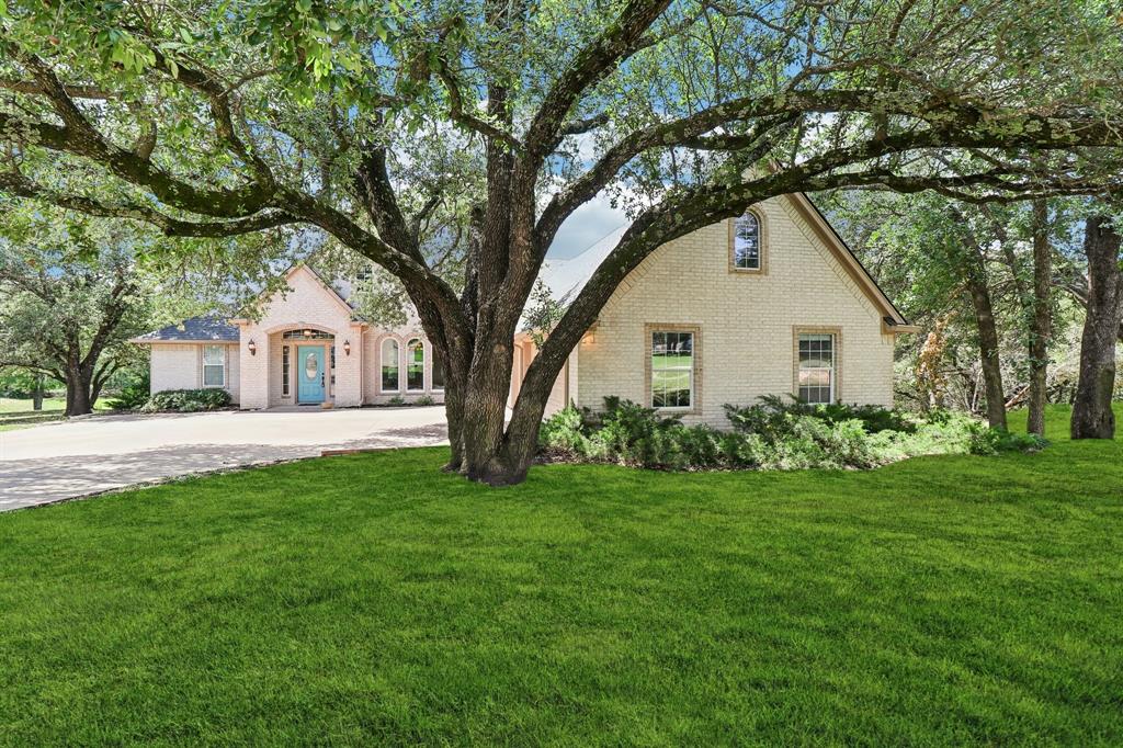 Stop the car this home has it all! Beautiful and spotless clean home located on a private cul de sac in the gated golf community of Pecan Plantation! This home is truly a show stopper! Brand new roof just installed by local roof company DT Roofing! 3 bedroom, 2 full baths, 1 half bath, large open living room with a propane fireplace, separate dining area, separate breakfast area just off the kitchen, a large, functional, and open kitchen, separate office with built in cabinets, separate mud room, large separate laundry room with cabinets and a folding station! Extra large primary bedroom with sitting area and a separate walk out door to the covered back patio! Primary bath features 2 sinks, jetted garden tub, separate shower, and an enormous walk in primary closet with a window! Guest bedrooms are roomy with walk in closets. Great and functional guest bathroom and a half bath just off the laundry room and mud room. Oversized 3 car side entry garage with golf cart space. Granite countertops in the kitchen and a walk in pantry make a perfect cooking experience! Elegant and beautifully colored engineered wood flooring throughout most of the house give a stunning custom look! The exterior of this home is truly beautiful. Numerous very large and mature trees adorn the front yard offering ample shade and curb appeal. Elegant landscaping and shrubbery also create a very pleasant atmosphere. Now step out into the back yard and be amazed! Large covered back patio with great views out to the small creek offer a tranquil experience. Part of the back yard is elevated with a stone retaining wall and wrought iron fencing. Stone steps lead down to the creek area and more back yard space. This home shows pride of ownership throughout and is just waiting for its next owner to make it their own! Pecan Plantation offers Brazos River access, Lake Granbury access, multiple golf courses, and much more!