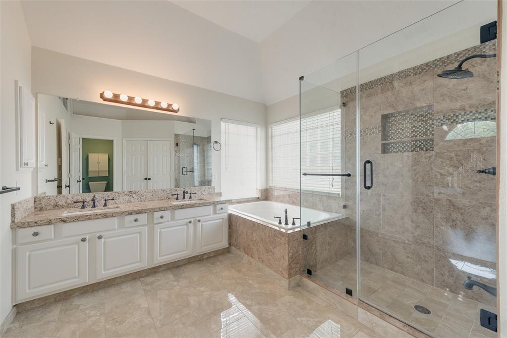 Upstairs, you’ll find four generously sized bedrooms, three full bathrooms with standing showers, and a flexible game or media room that can serve as a fifth bedroom or entertainment space. The luxurious primary suite includes a spa-like en-suite bathroom with his-and-hers vanities, a soaking tub, separate shower, and a large walk-in closet. All bathrooms are upgraded with granite countertops.