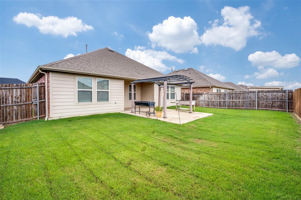 NEW ROOF (JULY 2025) with warranty, NEW GUTTERS and fence stain!! Nestled in the heart of Princeton’s desirable Winchester Crossing neighborhood, this beautifully maintained single-story home is ready to welcome you. With eye-catching curb appeal and a striking stone-and-brick exterior, this residence combines comfort, style, and convenience. Inside, you'll find an open-concept floor plan featuring 3 bedrooms and 2 bathrooms, ideal for modern living. The spacious kitchen boasts granite countertops, stainless steel appliances, and a large island—perfect for hosting gatherings with family and friends. Enjoy added value with recent upgrades including brand-new carpet, and included appliances such as the refrigerator, washer, dryer, and three wall-mounted televisions. The private primary suite offers a peaceful retreat with an en-suite bath, while two additional bedrooms are thoughtfully split and share a full bathroom. Step outside to a lush, grassy backyard—perfect for children and pets—with an extended patio and pergola that create a serene outdoor living space. The Winchester Crossing community enhances your lifestyle with outstanding amenities, including swimming pools, a splash pad, playgrounds, and walking trails. This home perfectly blends comfort and style for everyday living and effortless entertaining. A must see.