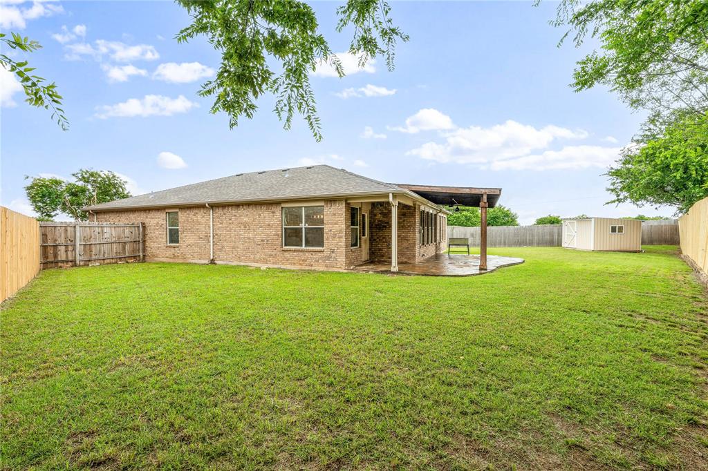 Step outside to the covered back patio overlooking a large, private yard—ideal for cookouts, relaxing evenings, or hosting friends. A well-kept storage building adds extra functionality without sacrificing green space.