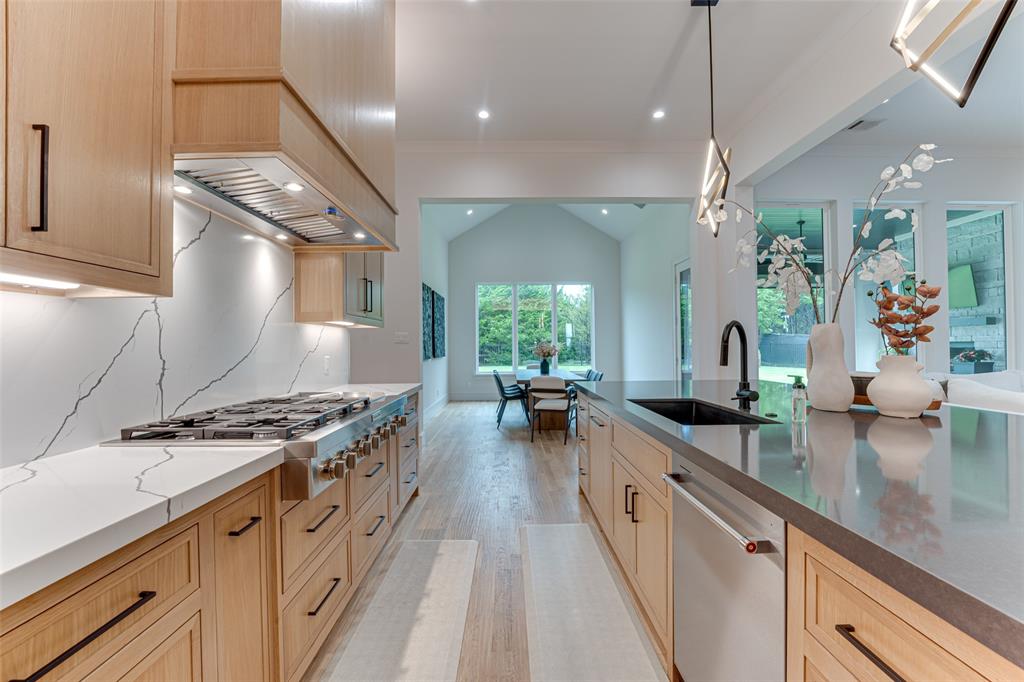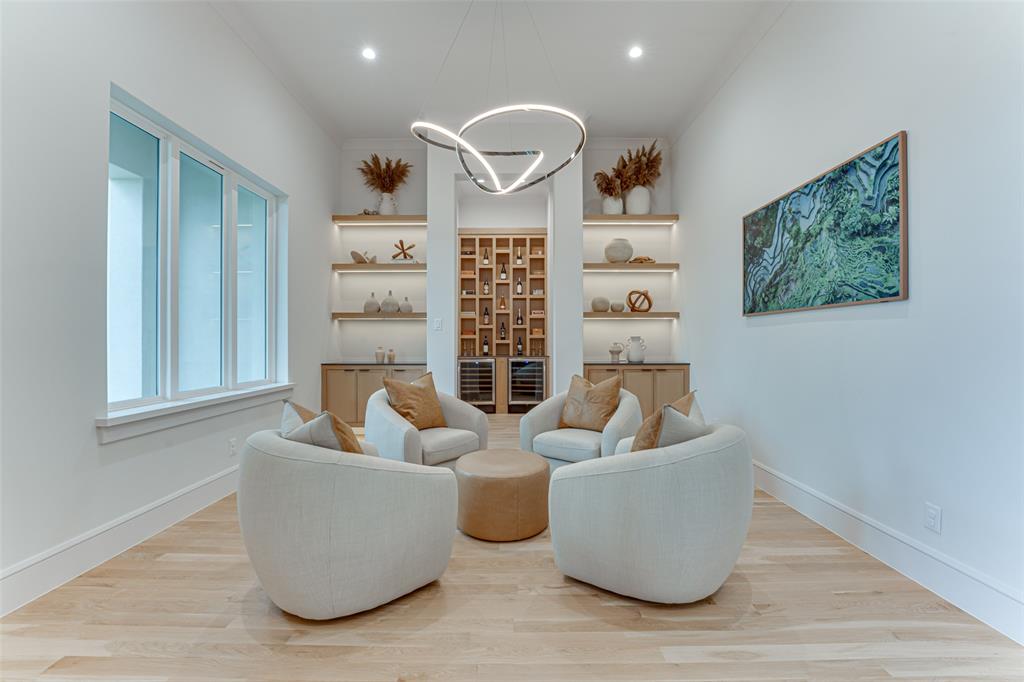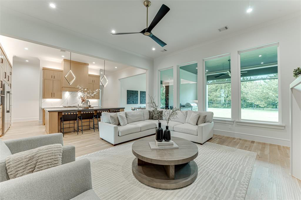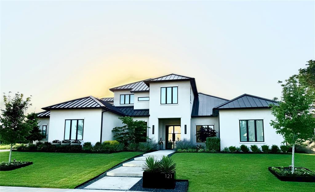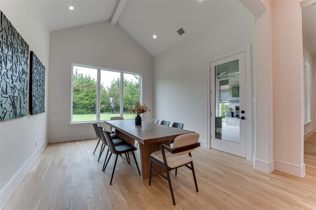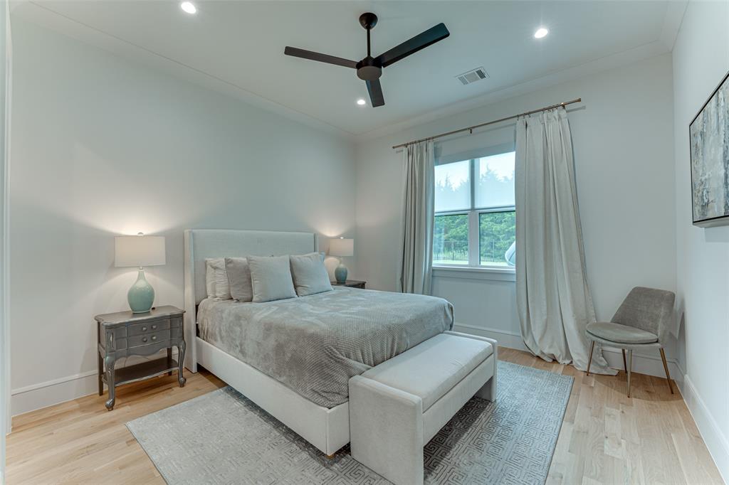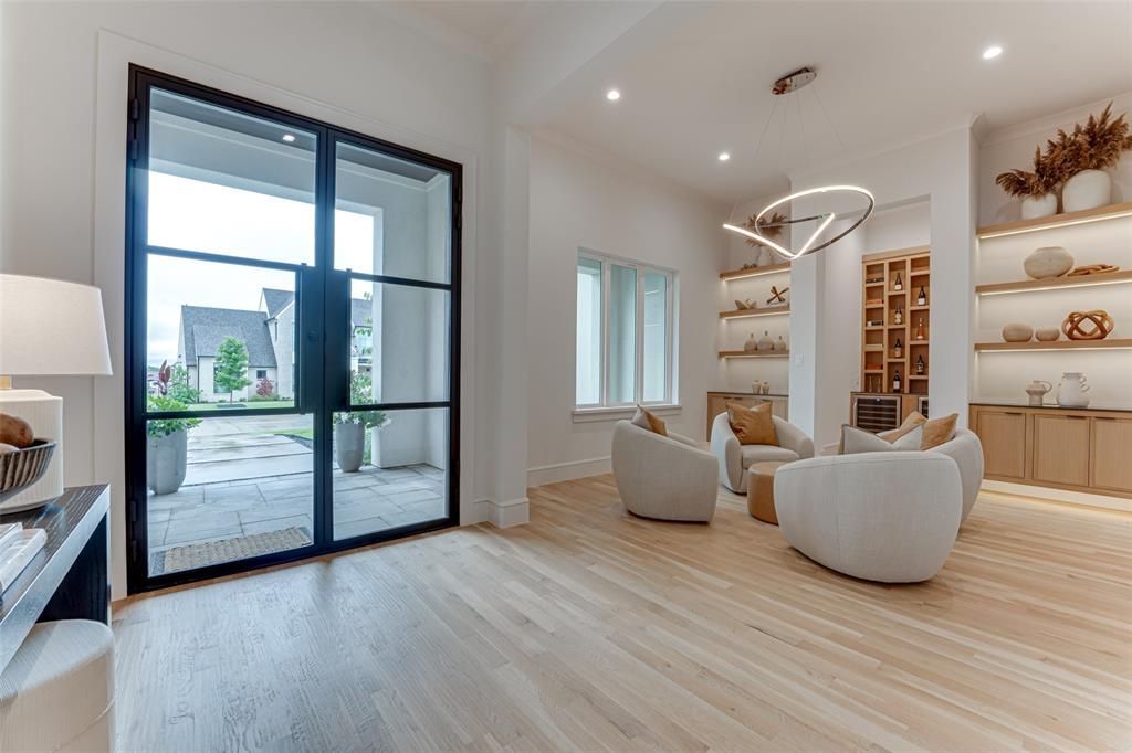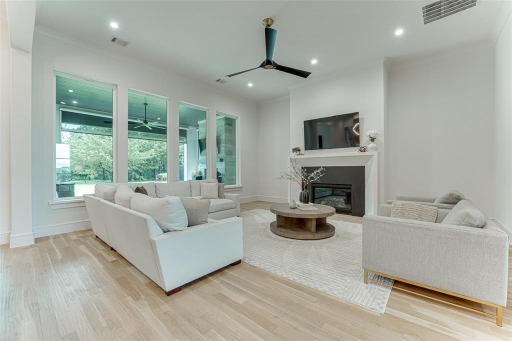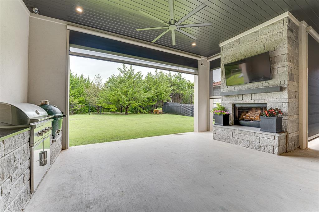 Built by Rick Shipley, recipient of D Home Magazine's Best Builder Award and Rockwall's premier custom home builder since 1982—this transitional modern residence marries timeless craftsmanship with visionary design. The well-manicured, lush landscaping grabs your attention from the curb and invites you into this elegant home. The kitchen showcases rift-cut white-oak cabinetry, an oversized island, top-of-the-line appliances, butlery, and walk-in pantry; it opens seamlessly to a vaulted dining room and living area framed by views of the large yard, beautiful trees and protected greenbelt. The grand covered patio includes a built-in outdoor kitchen, wood-burning fireplace, custom privacy shades, and serene views. Inside, the first-floor primary suite boasts a resort-inspired bath with dual vanities, free-standing tub, private shower, and an expansive custom closet. This home offers two dedicated offices: an executive study with elegant cabinetry and storage and a separate home-management office. The main level also offers a powder room, TV-media room, and guest suite with private bath. Upstairs, the family-game room anchors two additional bedrooms. The attached two-car garage adjoins an oversized single-bay garage, delivering abundant storage, utility sink, and workshop space. It is equipped with security cameras, alarms, smart thermostats, automated lighting, and a six-hub mesh Wi-Fi network that can be controlled by your phone, and pre-wiring for distributed audio and surround sound. Masterfully crafted with foam encapsulation insulation, this home is highly efficient and delivers an unrivaled blend of style, comfort, and sophistication—an extraordinary sanctuary minutes from Lake Ray Hubbard, and top-rated schools.