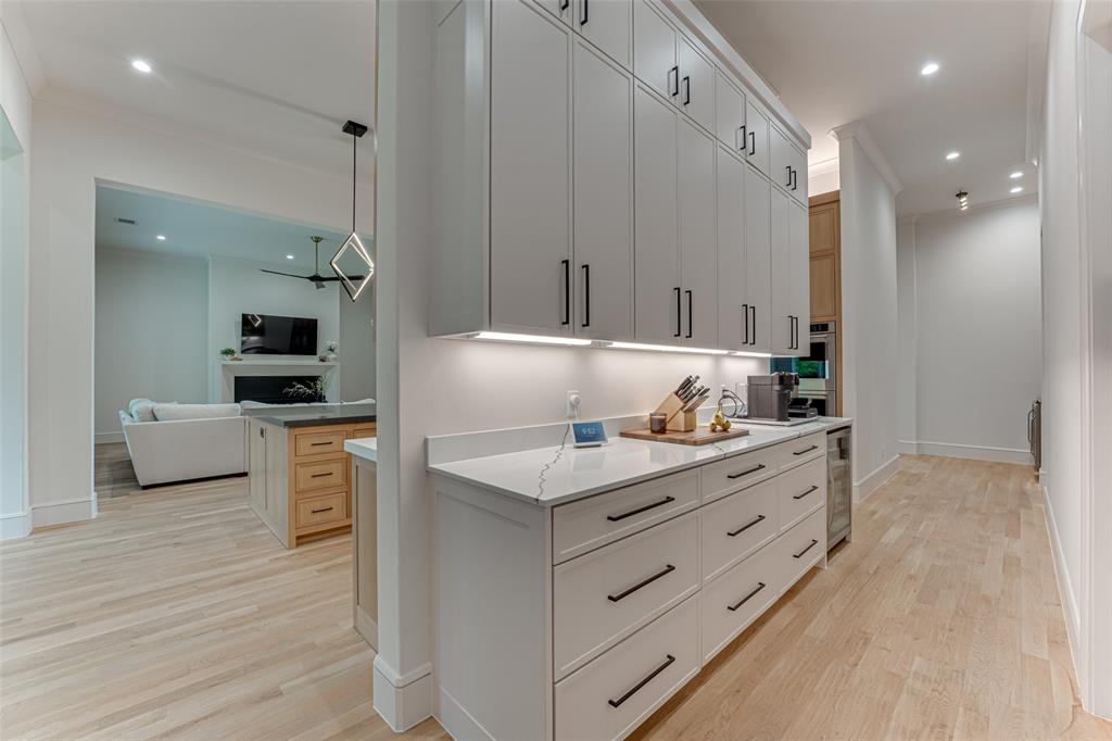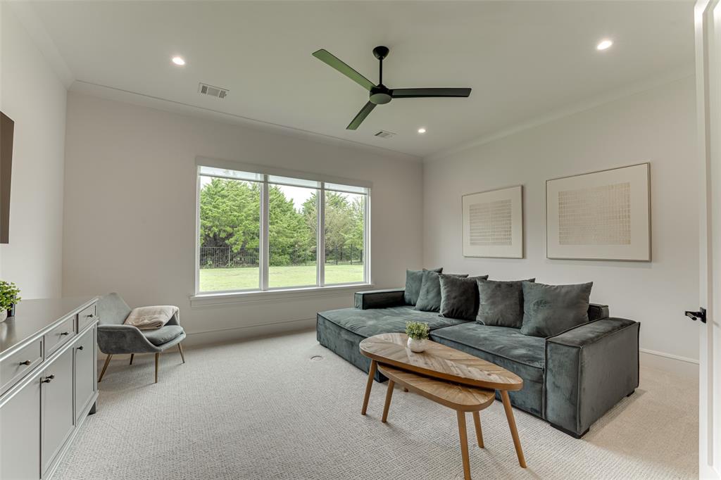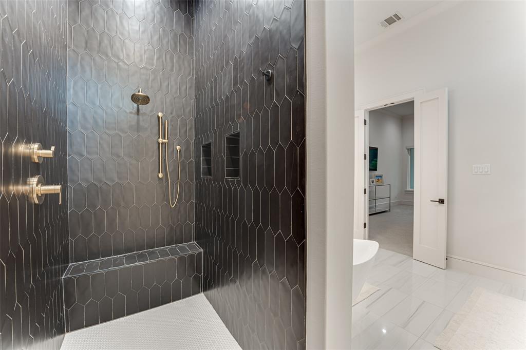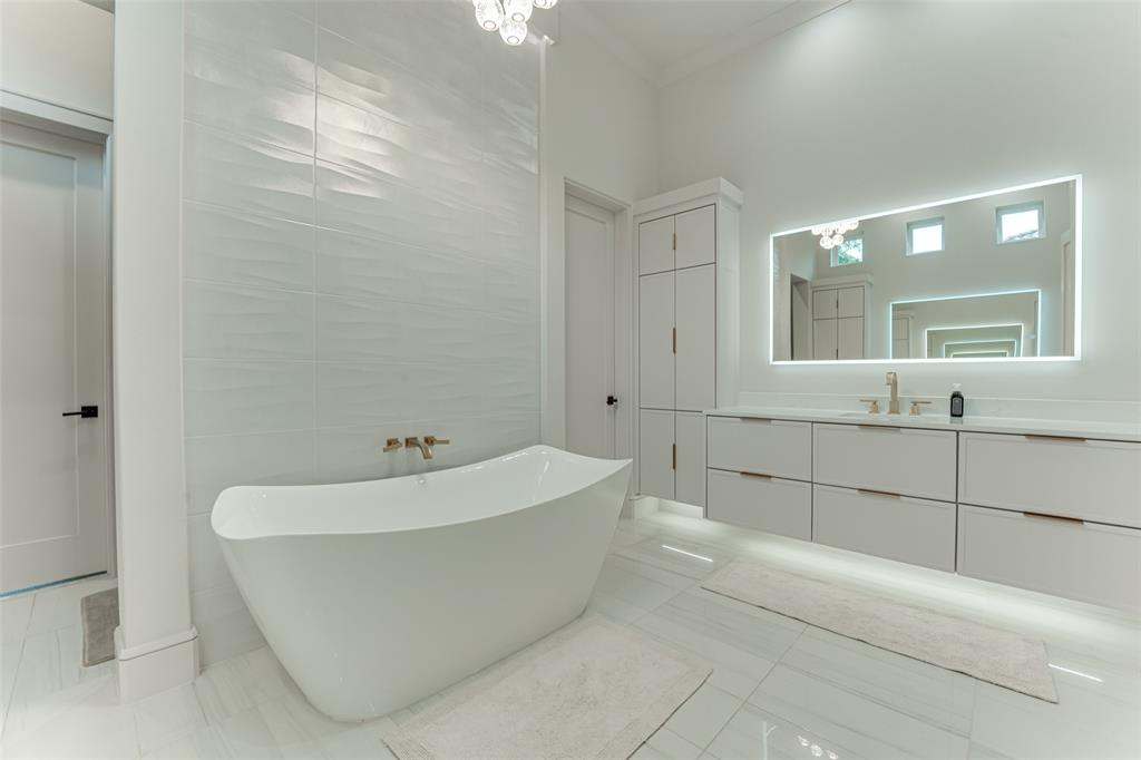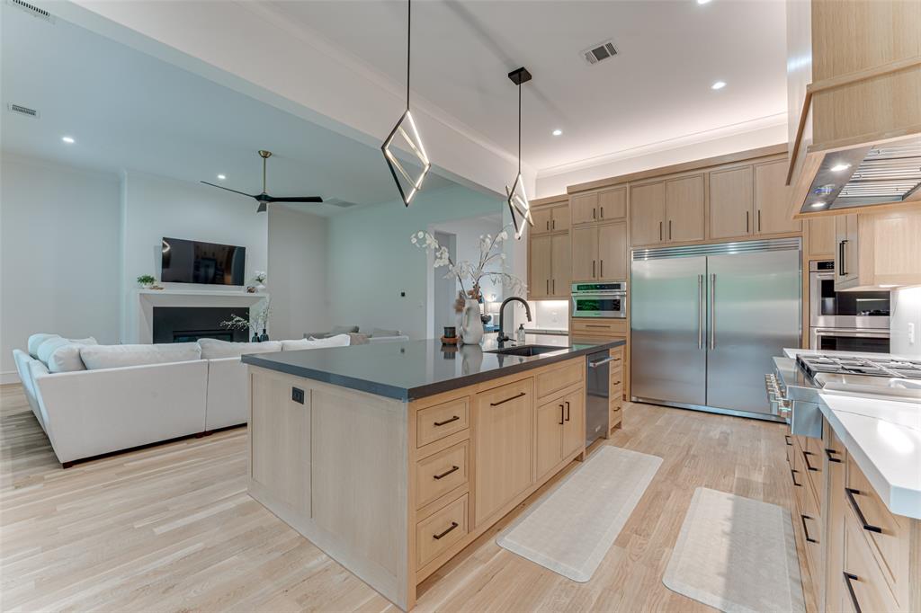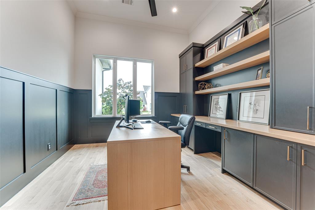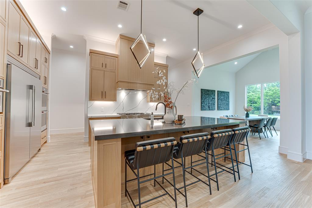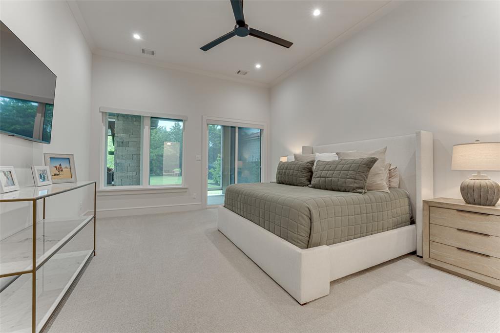 Built by Rick Shipley, recipient of D Home Magazine's Best Builder Award and Rockwall's premier custom home builder since 1982—this transitional modern residence marries timeless craftsmanship with visionary design. The well-manicured, lush landscaping grabs your attention from the curb and invites you into this elegant home. The kitchen showcases rift-cut white-oak cabinetry, an oversized island, top-of-the-line appliances, butlery, and walk-in pantry; it opens seamlessly to a vaulted dining room and living area framed by views of the large yard, beautiful trees and protected greenbelt. The grand covered patio includes a built-in outdoor kitchen, wood-burning fireplace, custom privacy shades, and serene views. Inside, the first-floor primary suite boasts a resort-inspired bath with dual vanities, free-standing tub, private shower, and an expansive custom closet. This home offers two dedicated offices: an executive study with elegant cabinetry and storage and a separate home-management office. The main level also offers a powder room, TV-media room, and guest suite with private bath. Upstairs, the family-game room anchors two additional bedrooms. The attached two-car garage adjoins an oversized single-bay garage, delivering abundant storage, utility sink, and workshop space. It is equipped with security cameras, alarms, smart thermostats, automated lighting, and a six-hub mesh Wi-Fi network that can be controlled by your phone, and pre-wiring for distributed audio and surround sound. Masterfully crafted with foam encapsulation insulation, this home is highly efficient and delivers an unrivaled blend of style, comfort, and sophistication—an extraordinary sanctuary minutes from Lake Ray Hubbard, and top-rated schools.