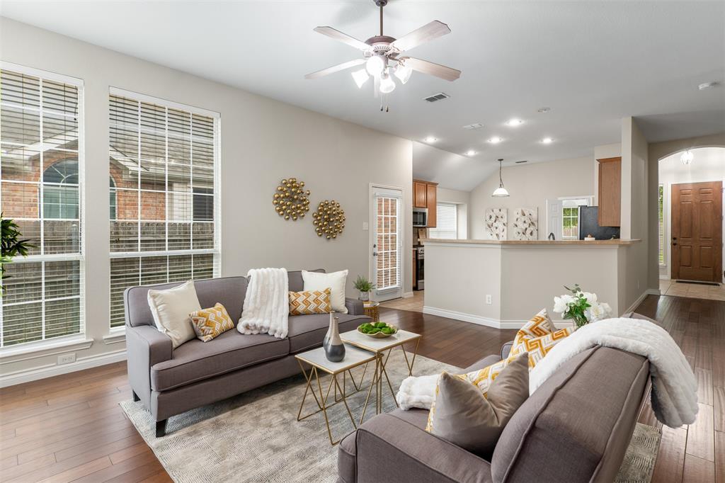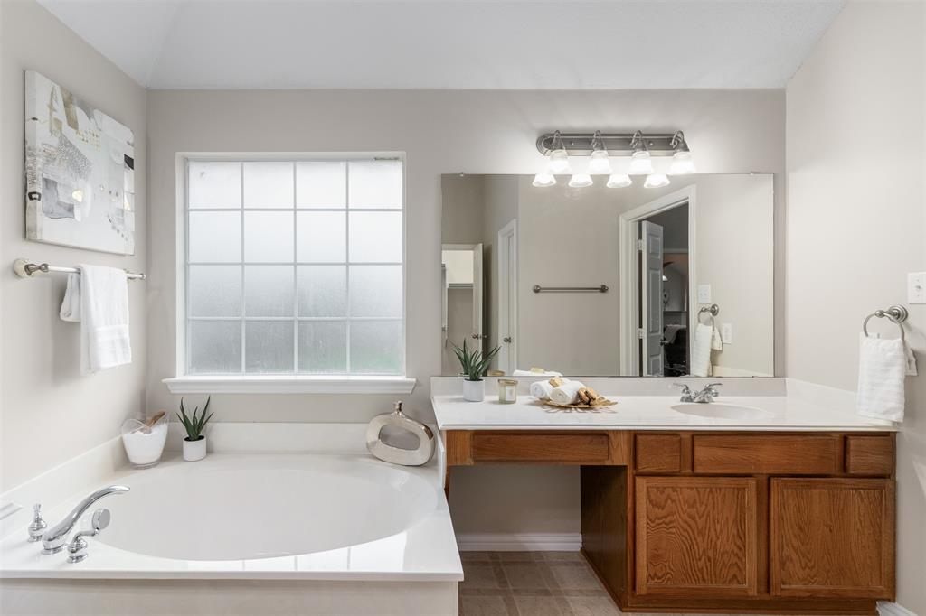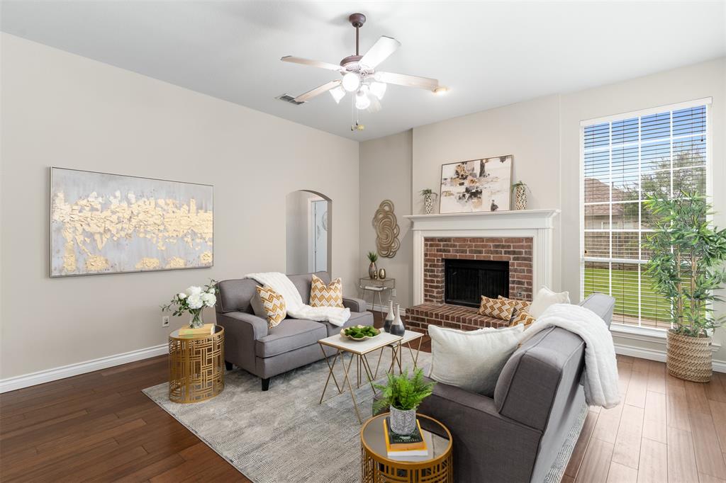 Looking for a happy place with charm, space, and unbeatable access to the outdoors? This bright and welcoming 3-bedroom, 2-bath home in the Woodbridge community checks all the boxes. Inside, you’ll love the open layout—perfect for entertaining or just keeping everyone connected. The kitchen centers around a large island that begs for pancake breakfasts and evening wine chats. A cozy gas fireplace anchors the spacious living room, while the formal dining room up front makes a great home office or playroom. The private primary suite feels like a true retreat with a soaking tub, separate shower, and walk-in closet. Out back, enjoy a patio and fully fenced yard ready for summer BBQs and starry-night hangouts. Best part? You’re less than a quarter mile from the neighborhood park and walking trails—just grab the dog or the stroller and go. Located in Garland ISD with school-of-choice flexibility, plus easy access to shopping, dining, and community pools. This is the kind of home that makes life feel easy and fun.