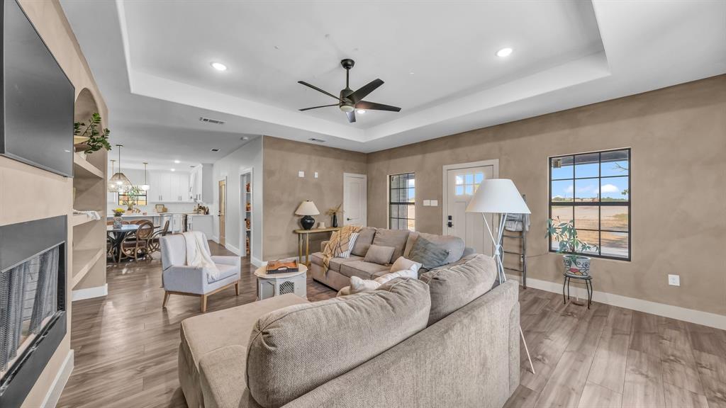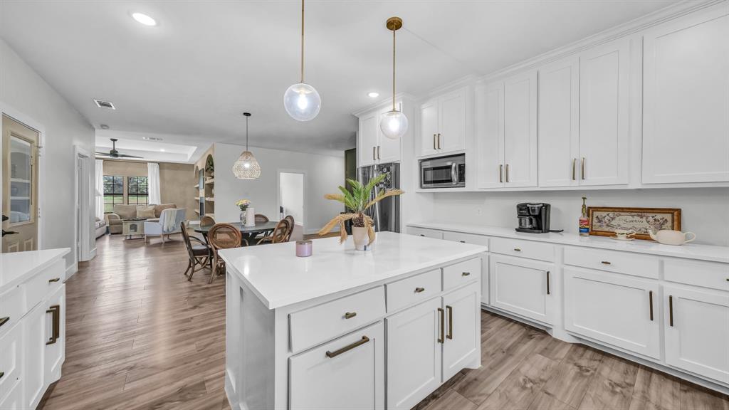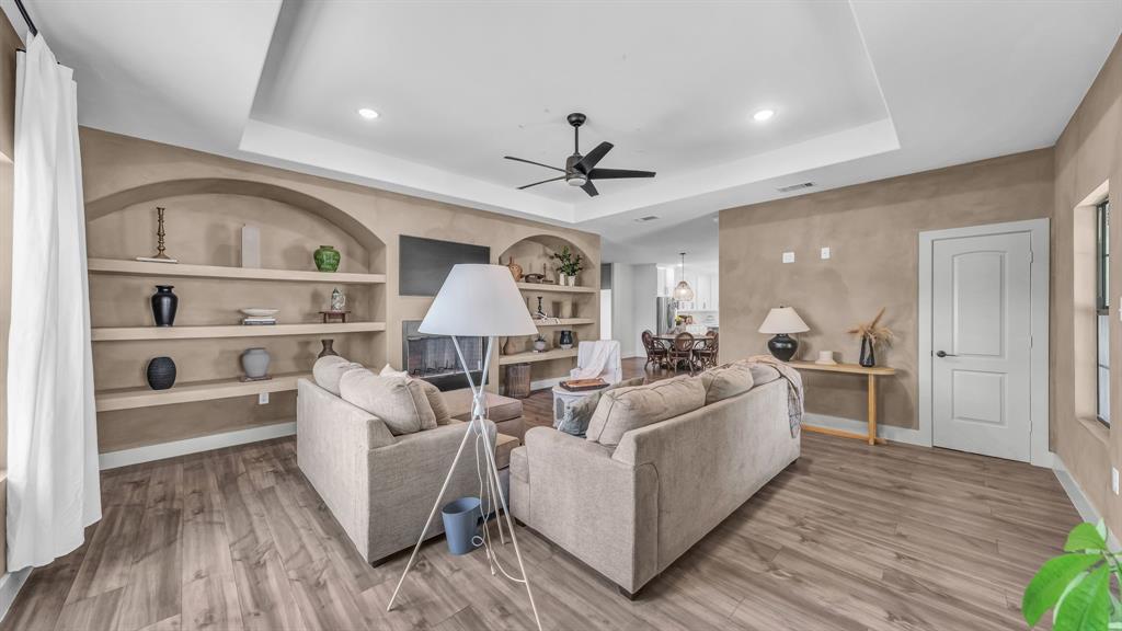 Inside, you'll find generously oversized bedrooms designed for comfort, complemented by an expansive living area featuring a stunning tray ceiling that fills the space with natural light—ideal for relaxing or entertaining guests. The large kitchen boasts sleek quartz countertops, an enormous walk-in pantry, and ample room for family gatherings and memorable meals.