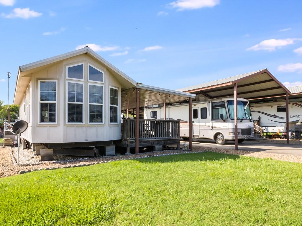 Welcome to your private lake retreat—an ideal escape or investment opportunity! This unique property includes three spacious lots, each with individual electric and sewer connections, and all stubbed for separate water meters. A charming tiny home sits on the center lot, complete with a covered deck perfect for lakeside lounging, entertaining, or enjoying evening breezes. Bring your RV and park under the oversized covered pavilion, fully equipped with RV hookups. The chain-link fence encloses all three lots, offering added privacy and security, with ample room to store boats, jet skis, and lake toys. Just 100 yards from the boat ramp, this property also grants access to a private clubhouse featuring an in-ground pool, playground, picnic area, and laundromat. Hosting a celebration? Homeowners can reserve the clubhouse for special events. Whether you’re looking for a weekend getaway or a full-time retreat, this lake-adjacent gem is ready for you to enjoy!