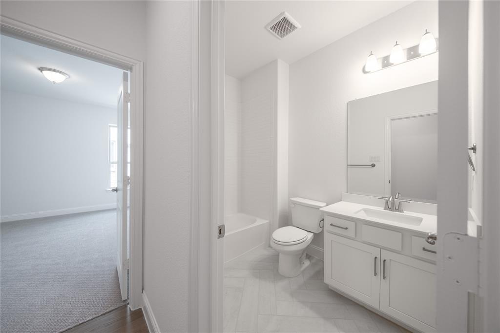 Designed with the latest trends in mind, this home showcases quartz countertops, rich hardwood flooring, and striking 42-inch linen cabinetry.
