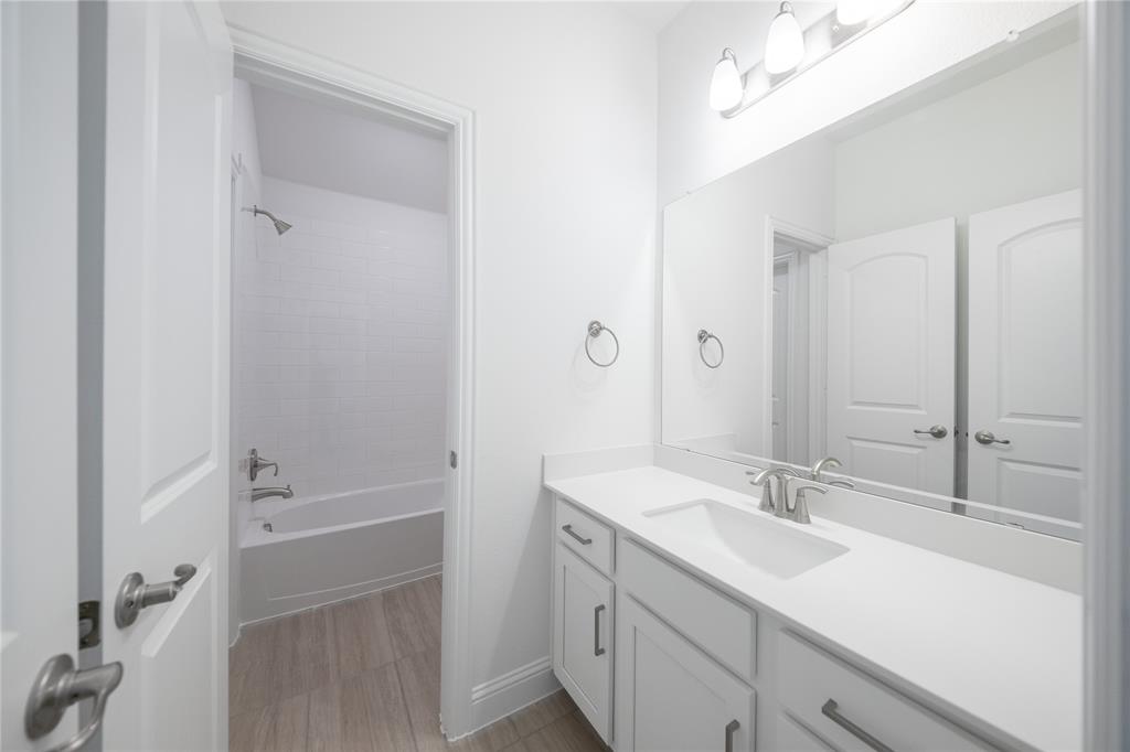 Designed with the latest trends in mind, this home showcases quartz countertops, rich hardwood flooring, and striking 42-inch linen cabinetry.