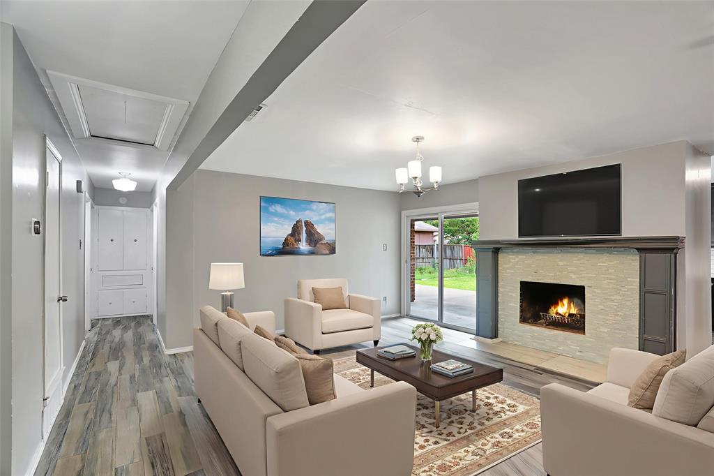 Recently updated four bedroom, single story home located in Golden Meadows! This home features tile flooring throughout and wood burning fireplace in living area! Master suite with walk in shower and walk in closet! Secondary bathroom with walk in shower and double sinks! Kitchen features stainless steel appliances, quartz counters, subway tile backsplash, ample cabinet space and adjacent dining area! Beautiful secondary bathroom wtih double sinks and walk in shower! New water heater June 2025. Spacious backyard with covered patio! Great location and just minutes from PGBT!
