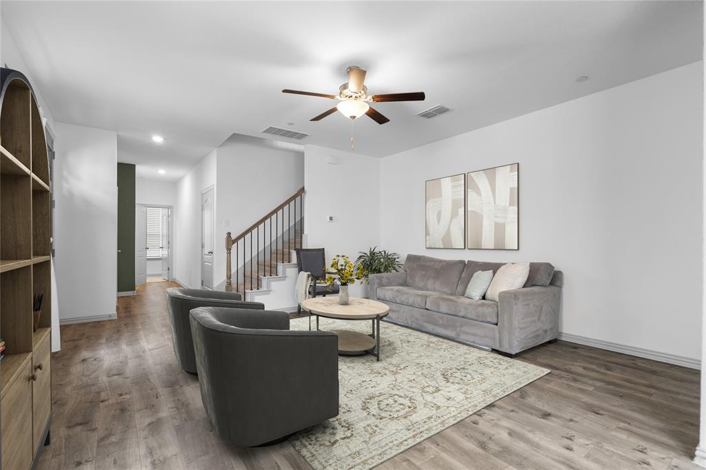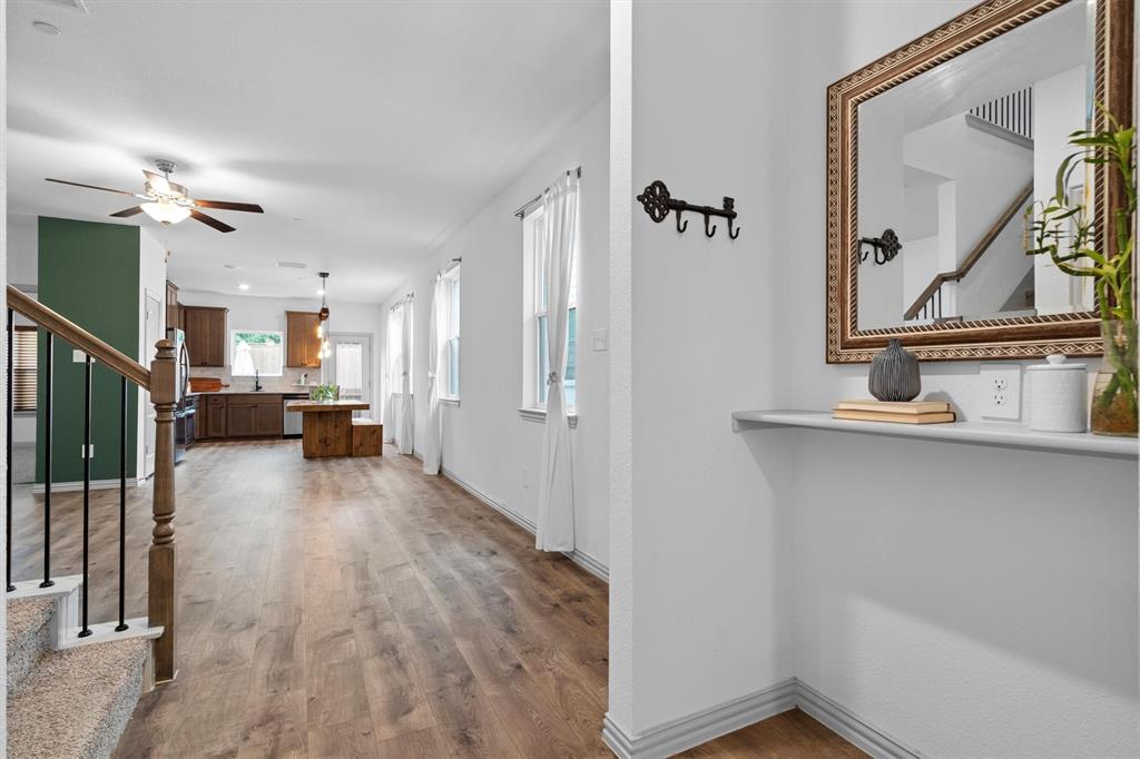 Step inside this beautifully designed townhome that perfectly combines functionality, comfort, and modern style. With a smart, open-concept layout and a plethora of windows, this home is filled with natural light that enhances the airy feel of every space. Featuring 4 generously sized bedrooms, 2.5 baths, and a large flex space, there’s plenty of room for entertaining, relaxing, or working from home. The primary suite is a peaceful retreat with a spacious walk-in closet and an upgraded en-suite bath featuring a sleek walk-in shower and dual sinks. The secondary bedrooms are equally large, offering flexible options for family, guests, or hobby rooms. The heart of the home is the chef-inspired kitchen, boasting stainless steel appliances, a modern accent backsplash, a large island, and abundant cabinetry—perfect for cooking, entertaining, or gathering around with loved ones. The adjoining living and dining areas are welcoming and bright, highlighted by neutral tones that complement any style. A spacious laundry room, 2-car garage, and a low-maintenance backyard offer convenience and comfort, while the freshly painted exterior adds curb appeal. Whether you’re hosting game night in the upstairs game room or using the bonus flex space as a home office or workout area, this home offers versatility for every lifestyle. Located in the Lewisville Lake District, enjoy access to a sparkling pool, dog park, biking and walking trails, and more. Just minutes from Lewisville Lake and public golf courses and a short drive to Denton, Grandscape, Frisco, and DFW Airport, the location can’t be beat. This is more than a home—it’s a lifestyle upgrade.