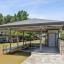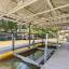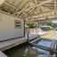 waterfront leisure. The boat lift includes a covered storage section for added utility, while a handcrafted stone stairway