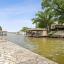 leads to a tranquil sitting area right at the water’s edge, offering a peaceful spot to enjoy morning sunrises or evening