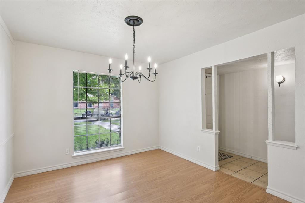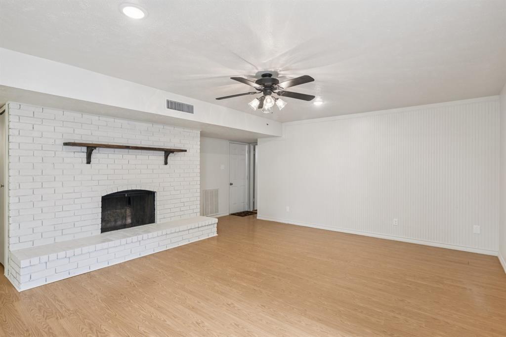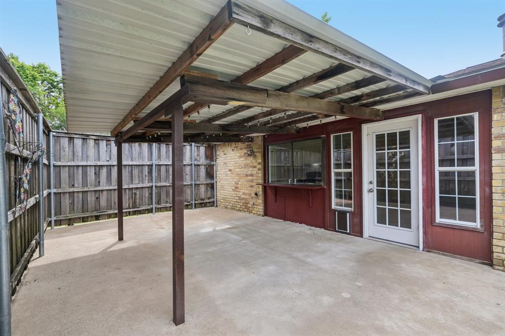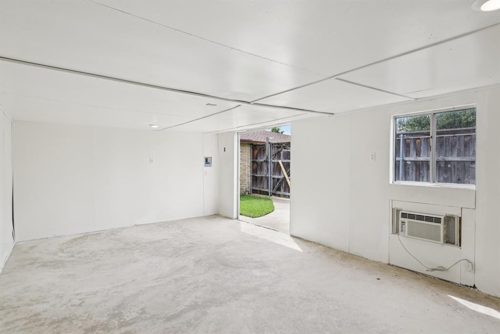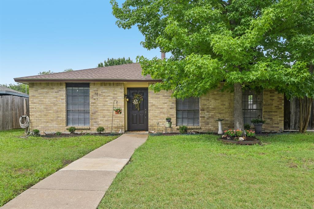 Charming, move-in ready home in Pleasant Valley Estates with thoughtful updates and a standout workshop. This well-maintained 3-bedroom, 2-bath brick home offers 1,586 sq ft of single-story living in an ideal location near Firewheel Mall, George Bush Turnpike, and Garland ISD Choice of School program. Step inside to find fresh Sherwin-Williams paint throughout the living areas, recently installed carpet in two bedrooms, updated switches and outlets, and upgraded ceiling fans and lights. The inviting living room features a cozy brick fireplace, while the galley kitchen includes built-in cabinetry and a walk-in pantry. The primary suite boasts a walk-in closet, private bath, and an updated pedestal sink.