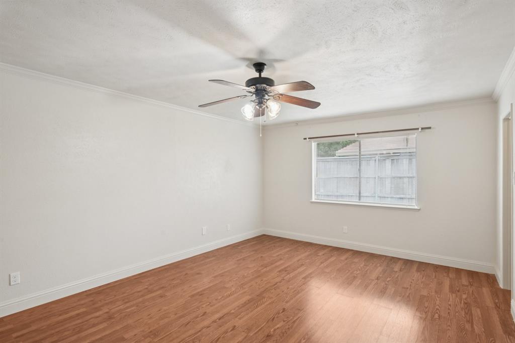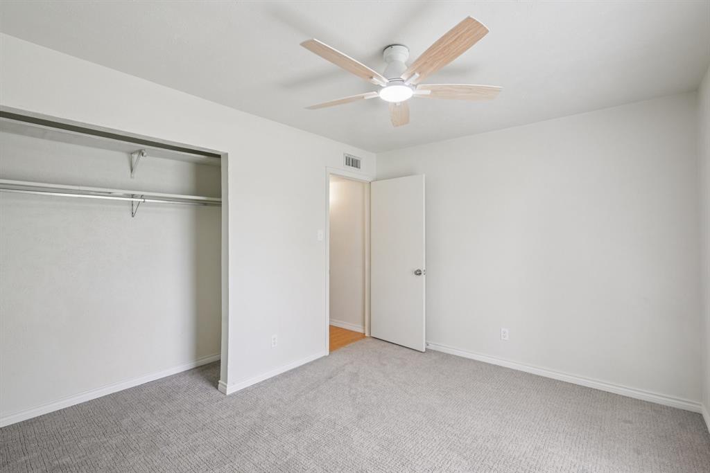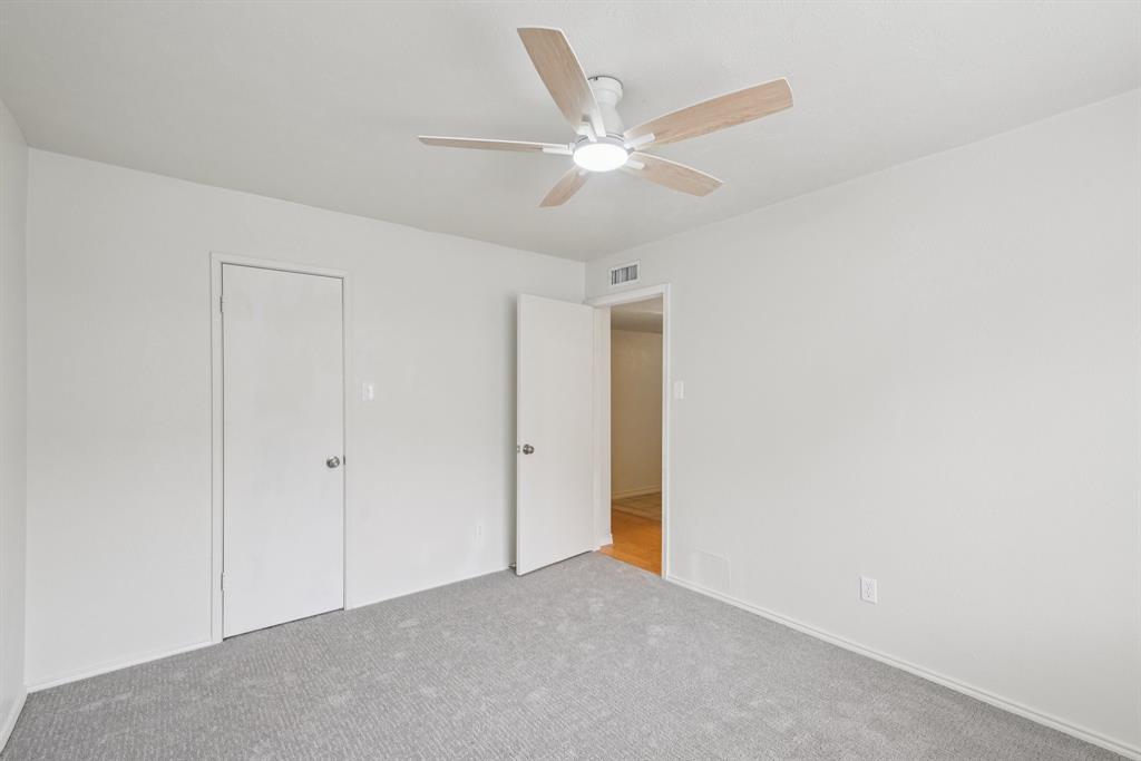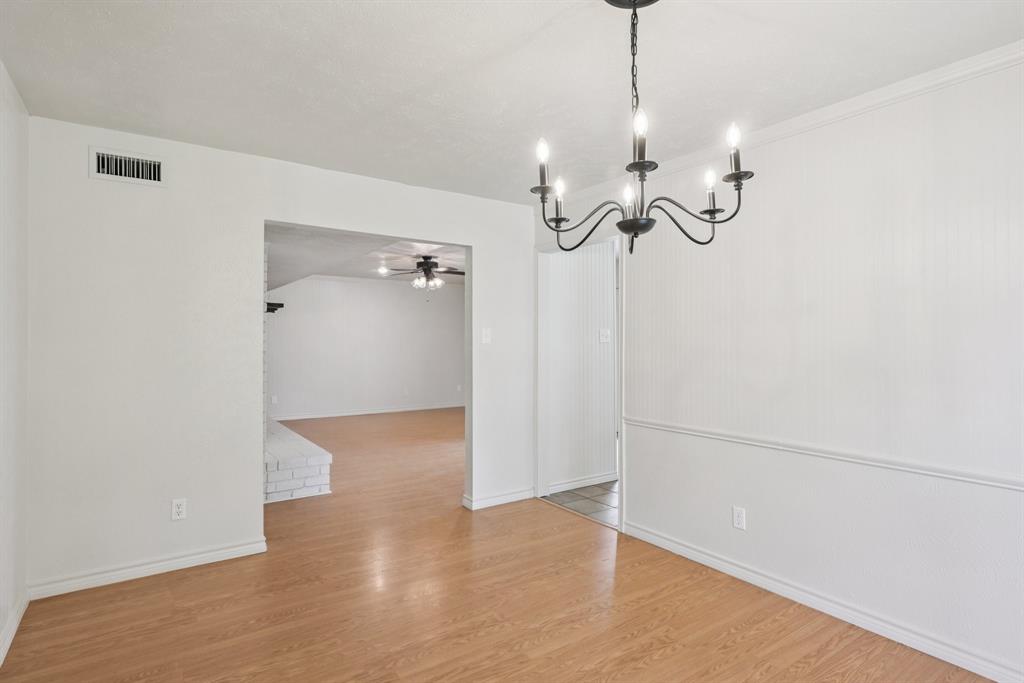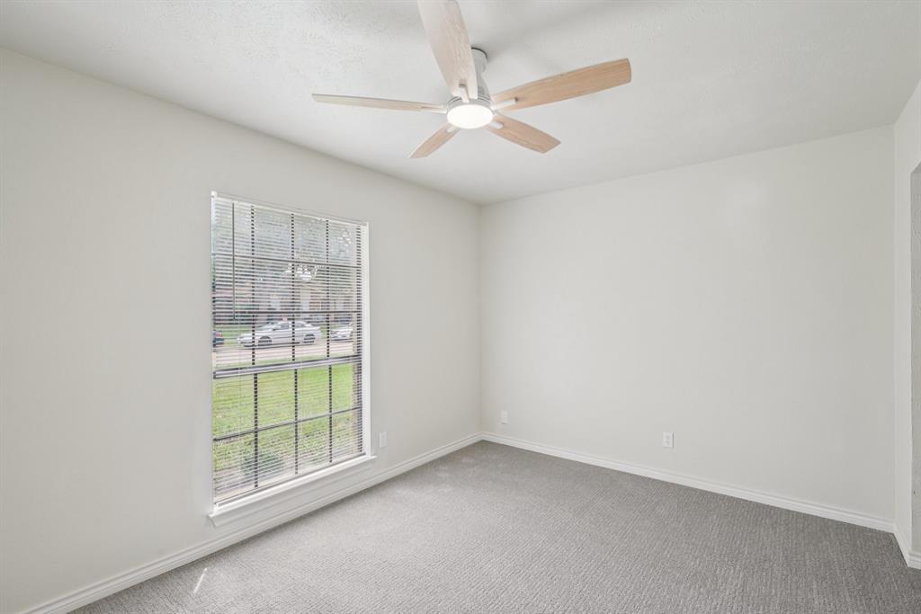 Charming, move-in ready home in Pleasant Valley Estates with thoughtful updates and a standout workshop. This well-maintained 3-bedroom, 2-bath brick home offers 1,586 sq ft of single-story living in an ideal location near Firewheel Mall, George Bush Turnpike, and Garland ISD Choice of School program. Step inside to find fresh Sherwin-Williams paint throughout the living areas, recently installed carpet in two bedrooms, updated switches and outlets, and upgraded ceiling fans and lights. The inviting living room features a cozy brick fireplace, while the galley kitchen includes built-in cabinetry and a walk-in pantry. The primary suite boasts a walk-in closet, private bath, and an updated pedestal sink.