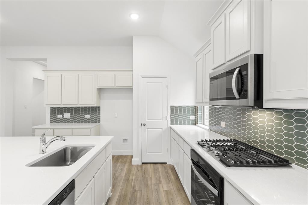 MLS# 20971456 - Built by Pacesetter Homes - Oct 2025 completion! ~ Set in the amenity-rich Heartland community, this spacious one-story home offers 4 bedrooms, 3 full baths, and a 3-car garage. Inside, the open layout centers around a large family room with a stone-surround fireplace, box beam mantel, and added transom windows that bring in natural light. The deluxe kitchen is both stylish and functional, with gray cabinetry, a white island, granite countertops, a 30 gas cooktop with pot and pan drawers, built-in oven and microwave, pendant lighting, a pull-out trash can drawer, and a herringbone tile backsplash. Stainless steel GE appliances complete the space. Luxury vinyl plank flooring extends through the main living areas, giving the home a clean, modern feel. The private guest suite includes its own full bath, perfect for visitors or multigenerational living. The primary suite features a garden tub, glass-enclosed tile shower, dual sinks, and two walk-in closets - one with a door to the laundry room. Out back, the covered patio includes a gas drop for a future grill. With flexible living spaces and high-end finishes, this home is ready for everyday comfort and weekend entertaining. Heartland is located just 25 miles east of Dallas and offers lakeside trails, two resort-style amenity centers, pools with slides, fitness centers, playgrounds, dog parks, sports fields, and year-round events. Zoned to Crandall ISD with on-site schools. Your Pacesetter Home comes equipped with a suite of smart features designed to enhance everyday living