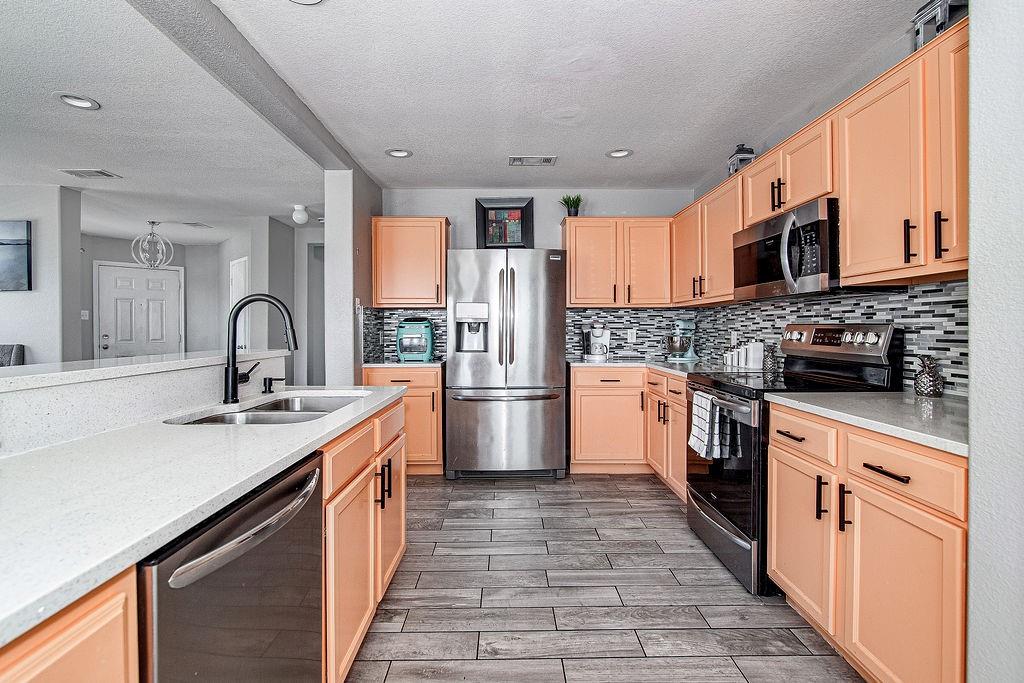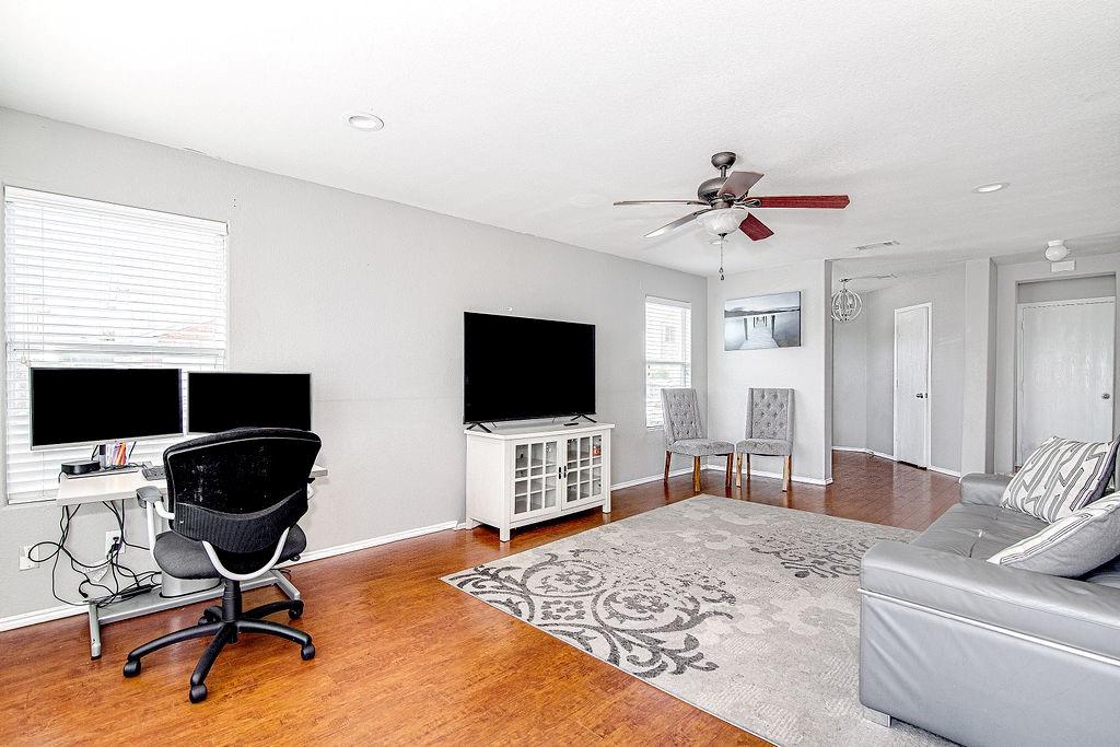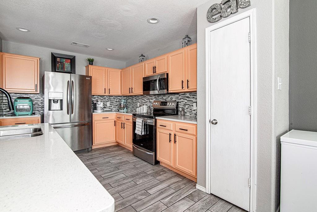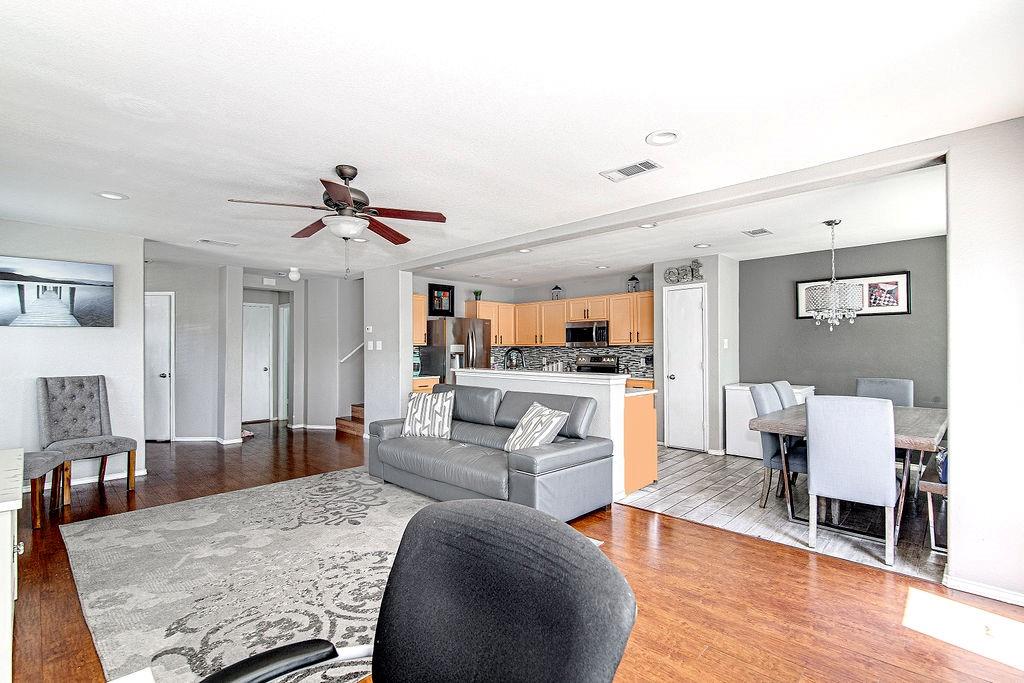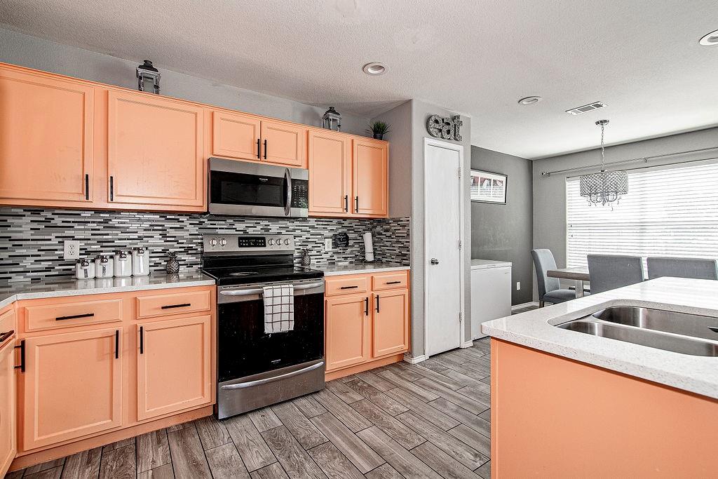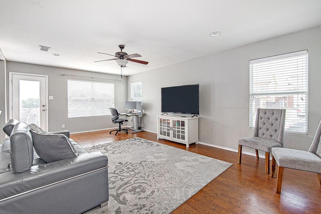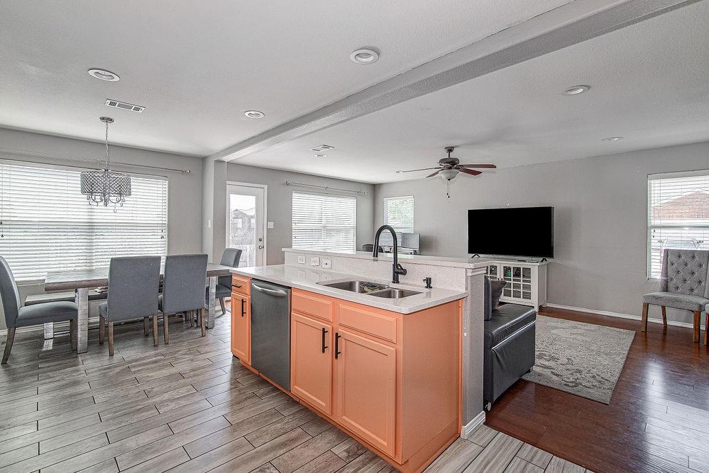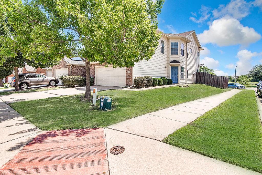 Adorable Townhome with greenbelt in the highly sought after Saginaw ISD! Large entry way welcomes you home as you walk in through the private entrance on the side. Open concept living, kitchen & dining room keeps everyone involved in the activities of the day & is a great space for entertainment. Your primary suite is located upstairs just off of the game room or second living room. Upgrades include new countertops, backsplash and fresh cabinets and new flooring in kitchen and updated bathrooms. Primary en-suite has a garden shower tub, & a 7x9 walk-in closet. Utility room is also upstairs making doing laundry a breeze. Two large bedrooms with large closets and a good sized guest bathroom with garden tub are all upstairs as well.