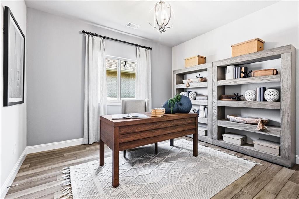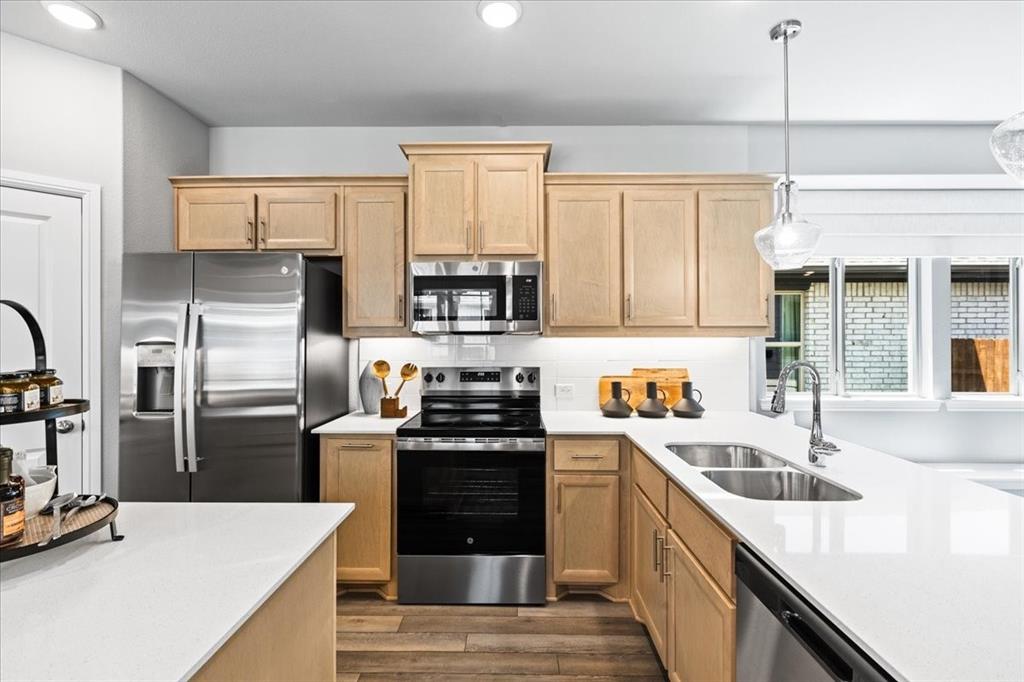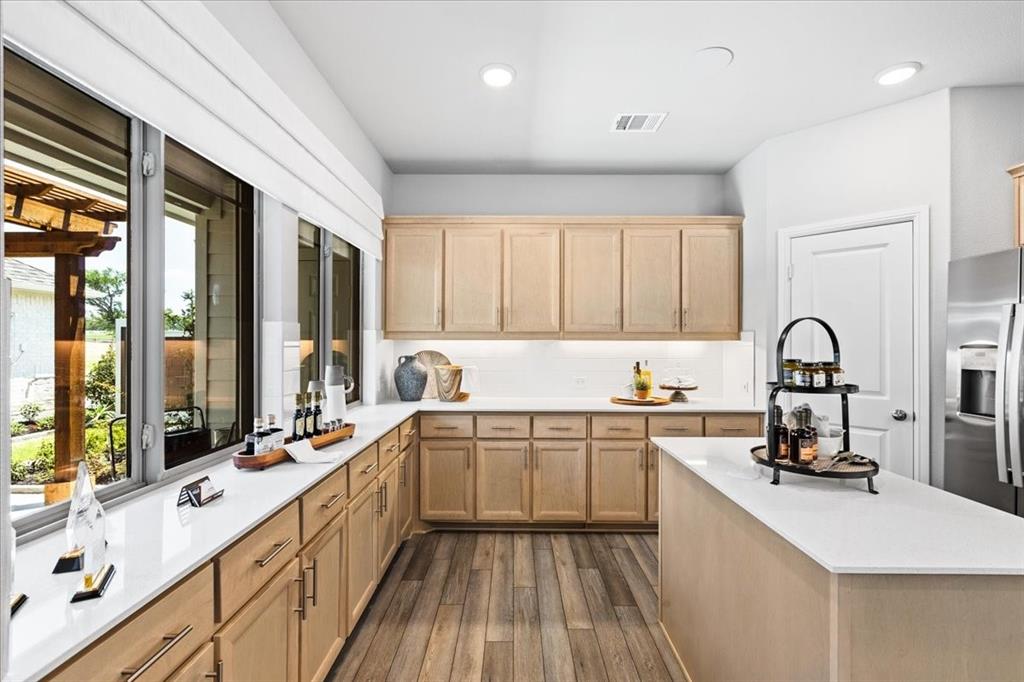 MLS# 20971819 - Built by Pacesetter Homes - Sep 2025 completion! ~ This single-story courtyard-style home blends open living with thoughtful upgrades throughout. Featuring 3 bedrooms and 2 bathrooms, it offers a spacious layout with a large family room centered around a cozy fireplace and plenty of natural light. The kitchen includes an extended cabinet layout with a central island, maple-stained cabinetry, quartz countertops, a 5x5 white tile backsplash, smart storage solutions like pot and pan drawers and a pull-out trash can, and GE stainless steel appliances complete the space. Luxury vinyl plank flooring runs through the main living areas, while added disk lighting in the family room and primary bedroom enhances the home's bright, inviting feel. The primary suite includes a glass-enclosed tile shower with a sleek shower set for a spa-like touch. This low-maintenance courtyard layout offers comfortable living with upscale features and a relaxed flow from room to room.Located in the highly sought-after Elevon community, this home is just around the corner from the upcoming Amenity Center, which will include a pool with tanning ledge, splash pad, private cabanas, outdoor kitchen, clubhouse, playgrounds, and sports courtsincluding pickleball! Plus, enjoy miles of nature trails and the convenience of 1-gig fiber optic internet included in the HOA.Your Pacesetter Home comes equipped with a suite of smart features designed to enhance everyday living.-Ring Video Doorbell-Brillant Smart Home System to control lighting and music-Honeywell.