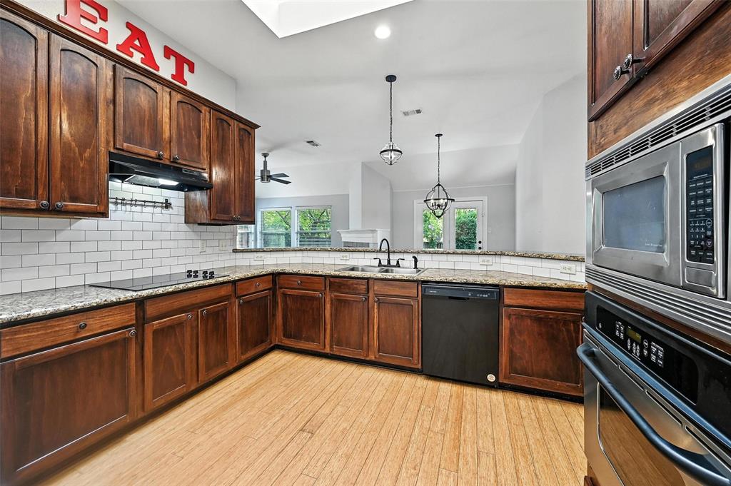 Step inside to discover renewable bamboo hardwood floors, fresh interior paint, and an open, airy layout with a soft, neutral color palette that compliments any style. The home features two spacious living areas, a formal dining room, and a light-filled kitchen that’s perfect for hosting family and friends. The kitchen is a true highlight with granite countertops, stainless steel appliances, a breakfast bar, walk-in pantry, and plenty of cabinetry offering tons of prep and storage space.