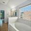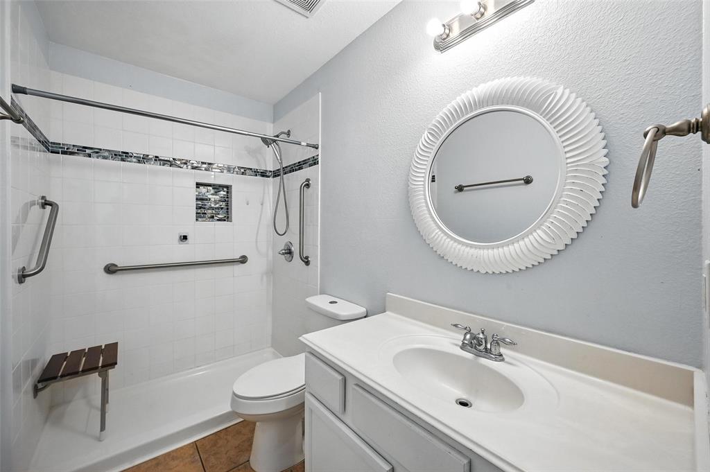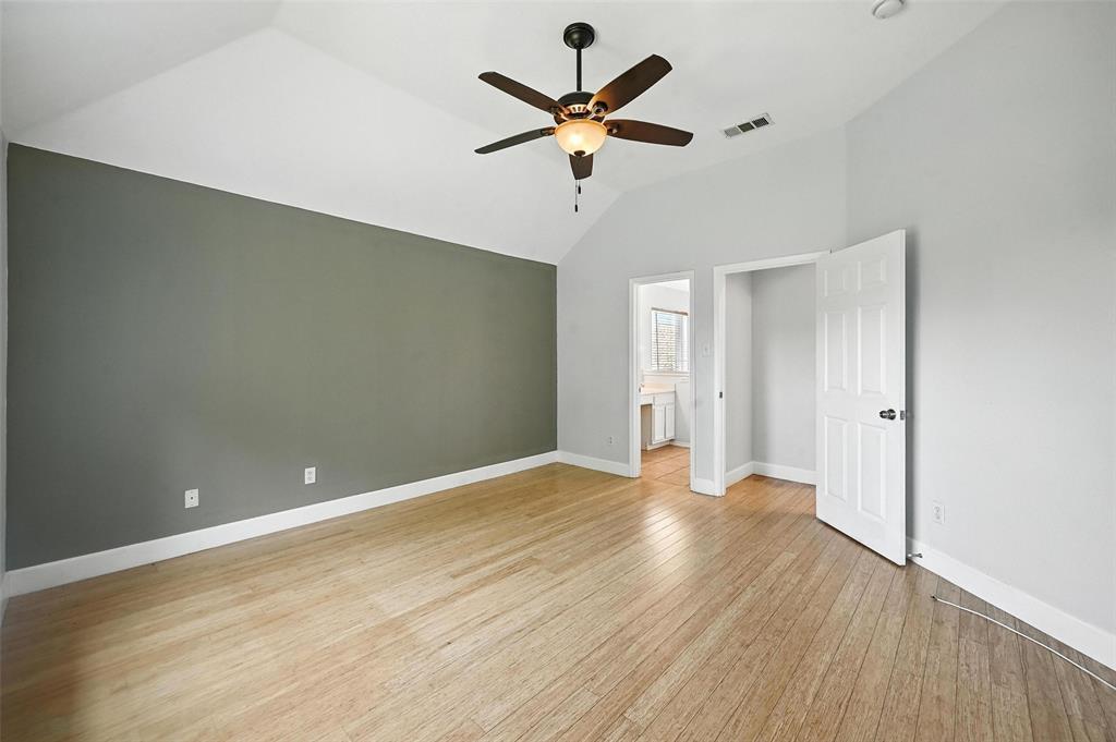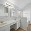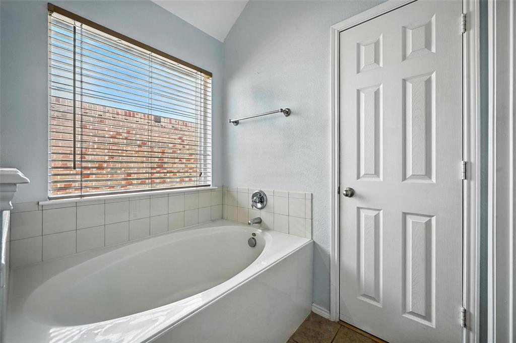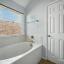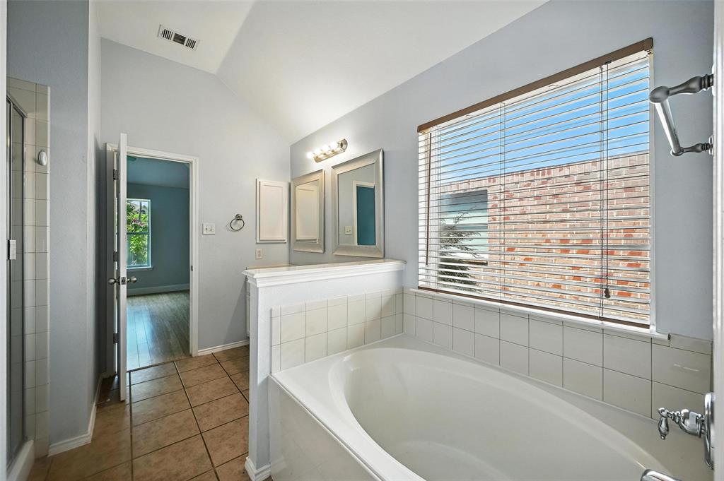 The private primary suite is a serene retreat, complete with a dual-sink vanity, separate shower, soaking garden tub, and a generous walk-in closet. Secondary bedrooms are well-sized and share a nicely appointed hall bath.