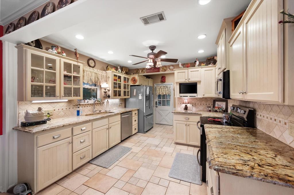 Welcome to this charming and spacious 3-bedroom, 2-bath home located in the heart of the Carriage District. Nestled on a corner lot with the lot next door included on beautiful W 3rd Avenue. This beautifully maintained home offers warmth, character, and functionality throughout. From the moment you arrive, you’ll appreciate the inviting curb appeal and the spacious feel provided by the corner location. Inside, the home boasts a welcoming and well-thought-out layout. The spacious primary bedroom is a true retreat, offering ample room for relaxing and unwinding. The living area is warm and inviting, centered around a cozy fireplace that creates the perfect spot for gathering with loved ones or enjoying a quiet evening. With two dining areas, there’s plenty of space for entertaining—whether it’s a casual breakfast or a more formal dinner with guests. The kitchen is both beautiful and practical, designed with plenty of counter space and cabinetry, making meal prep and hosting a breeze. A large utility room adds to the home’s functionality, providing abundant space for laundry, storage, and everyday organization. Step out to the screened-in rear porch, an ideal setting for relaxing mornings with a cup of coffee or hosting evening get-togethers. This comfortable outdoor space is perfect for year-round enjoyment, rain or shine. The property truly shines outside as well, with a large workshop garage that offers endless possibilities for projects, hobbies, or additional storage. A storm shelter can be found in the garage for security and protection! There’s also a boat carport. A greenhouse and small storage building add even more versatility to the outdoor space, making it a gardener’s dream or a perfect setup for someone needing additional storage options. Located in one of Corsicana’s most desirable areas, it offers a rare combination of charm, space, and convenience. Don’t miss your chance to own this beautiful home that truly has something for everyone.