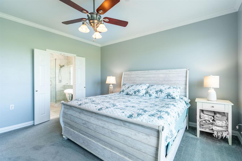 glass shower, rainfall head, dual sinks, custom mirrors, linen closet, & private water closet. Upstairs, enjoy
