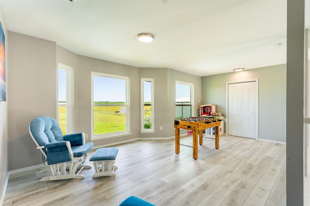 a loft-style game room with bay window & a climate-controlled storage room. Two guest bedrooms feature