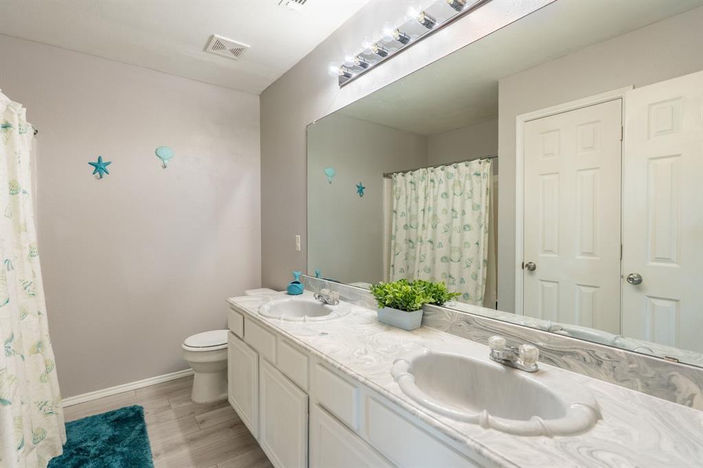 walk-in closets & ceiling fans. A second full bath offers dual sinks & dressing area.