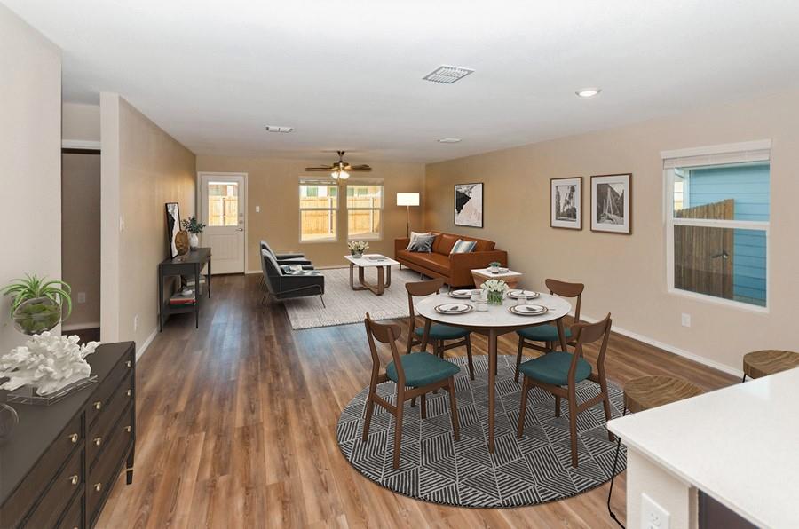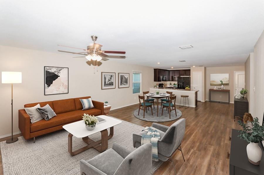 Seller is now offering up to $10,000 in concessions! This community is more than just a place to live; it’s a vibrant lifestyle! Enjoy fantastic amenities like a pool featuring a lazy river and splash pad, a mini golf course, a fitness center, parks, dog parks, and sports courts for basketball and volleyball. Don’t forget to bring your fishing rod for some fun at the community lake! The charming exterior boasts a covered front porch, while the inviting grassy yards come equipped with a sprinkler system for hassle-free maintenance. Inside, the kitchen impresses with light granite countertops, dark cabinetry, and sleek black appliances, along with a spacious closet pantry for all your storage needs. The split bedroom layout promotes privacy, complemented by an open living concept. Plus, the interior laundry room has space for a full-size washer and dryer with electrical hookups.