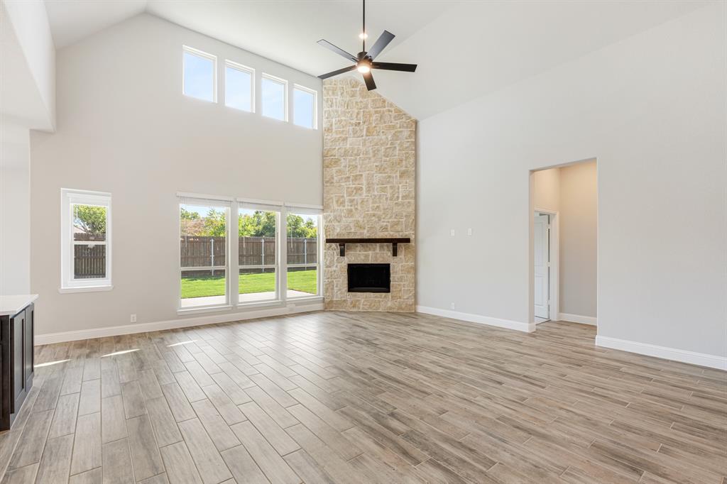BRAND NEW & NEVER LIVED IN BEFORE! Ready to Move-In NOW! Introducing the Primrose, a top Bloomfield design situated on an interior lot that boasts soaring ceilings, expansive windows, and a 3-car garage for added storage and functionality. Inside, the open-concept living space is elevated by upgraded C-Tile flooring and accent Tile that stretches through all main areas, enhancing the home’s natural flow and highlighting its refined finishes. A dramatic 18’ ceiling in the Family Room enhances the grandeur of the space, anchored by a striking Stone-to-Ceiling Fireplace with a cedar mantel that adds both warmth and architectural charm. The gourmet island kitchen is a showpiece, featuring a Deluxe layout with double ovens, all-electric stainless steel appliances, a pull-out trash bin, custom cabinetry, Quartz countertops, and a wood vent hood, all beautifully illuminated by under-cabinet lights, pendant lighting, and extra recessed can lights. Open Dining flows seamlessly into the Family Room, creating a bright, connected space ideal for hosting. A welcoming rotunda entry leads to sun-filled living areas where window seats invite cozy moments beneath vaulted ceilings, while Glass French Doors at the Study provide privacy without sacrificing style. The Primary Suite is a true retreat with elevated design elements, and the thoughtfully designed utility room includes upper cabinets for added storage. Outdoor living is equally impressive with an extended back patio, a bricked front porch, full gutters, double flood lights, front elevation uplights, and distinctive cedar garage doors that accentuate the brick and stone façade. Complete with blinds throughout, an 8' Front Door sets a bold and elegant tone that carries through the entire home. Visit Bloomfield at Villages of Walnut Grove today to explore this exceptional residence in person!