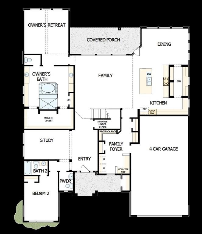 This two-story new-build home sits on a 100' homesite and features 5 bedrooms and 4.5 bathrooms, with 2 bedrooms on the main floor and 3 upstairs. The open layout includes a large kitchen and family room, a separate enclosed study, and an extended back porch for outdoor living. A spacious family foyer offers practical storage with backpack racks, counters, and cabinets, and the butler’s pantry adds extra prep space off the kitchen. With a 4-car garage and well-planned layout, this home is designed for both everyday functionality and comfort.!