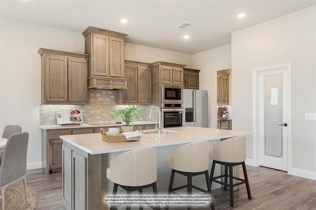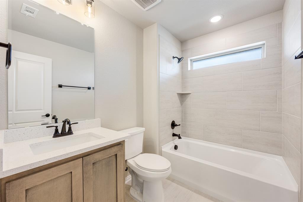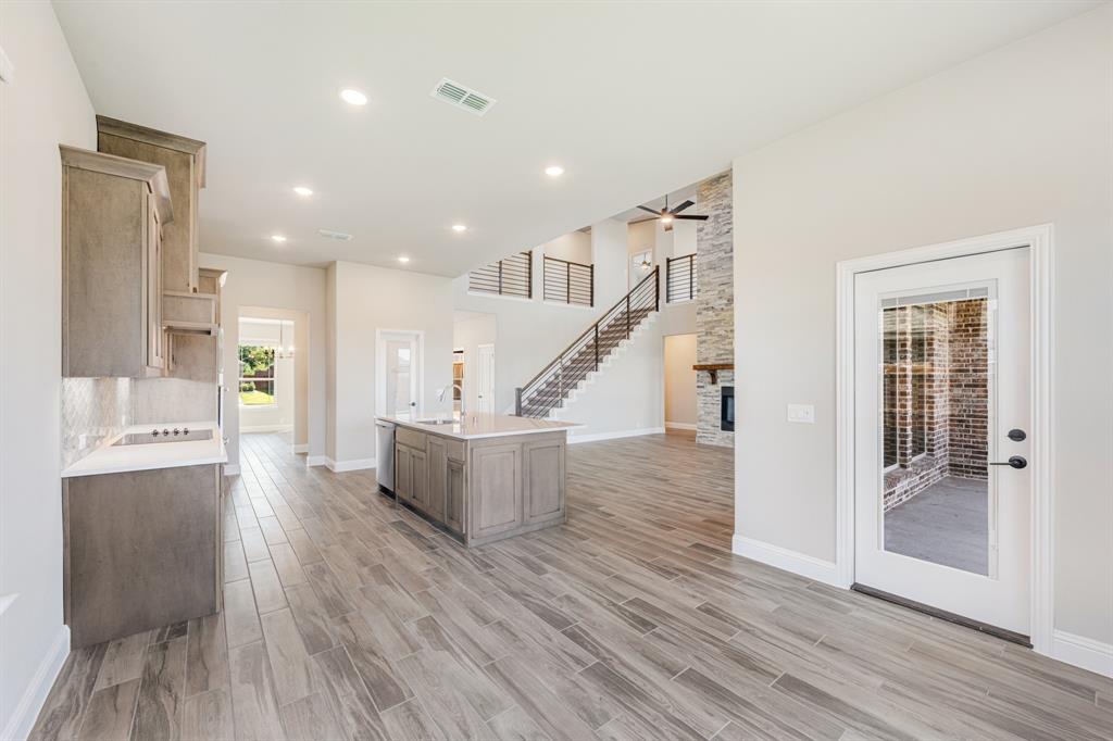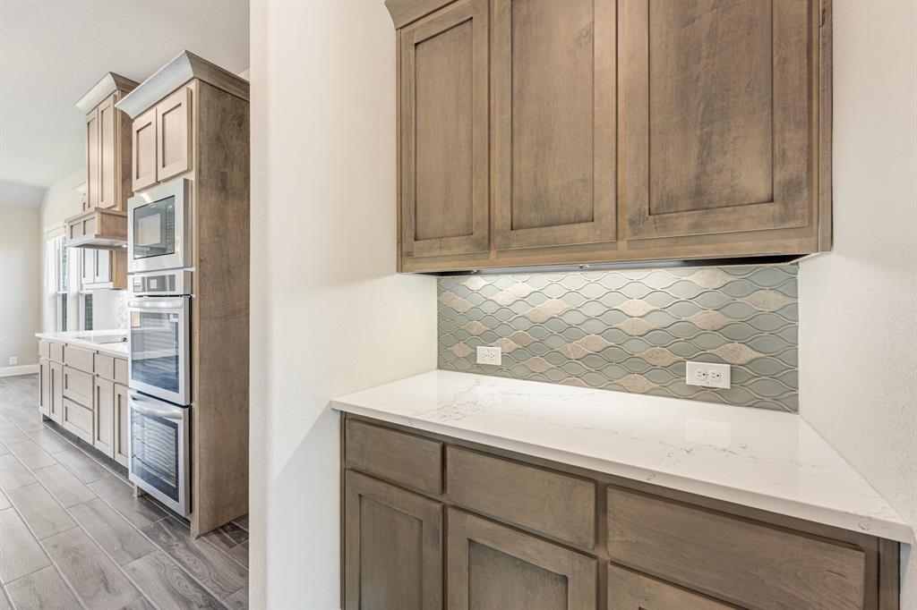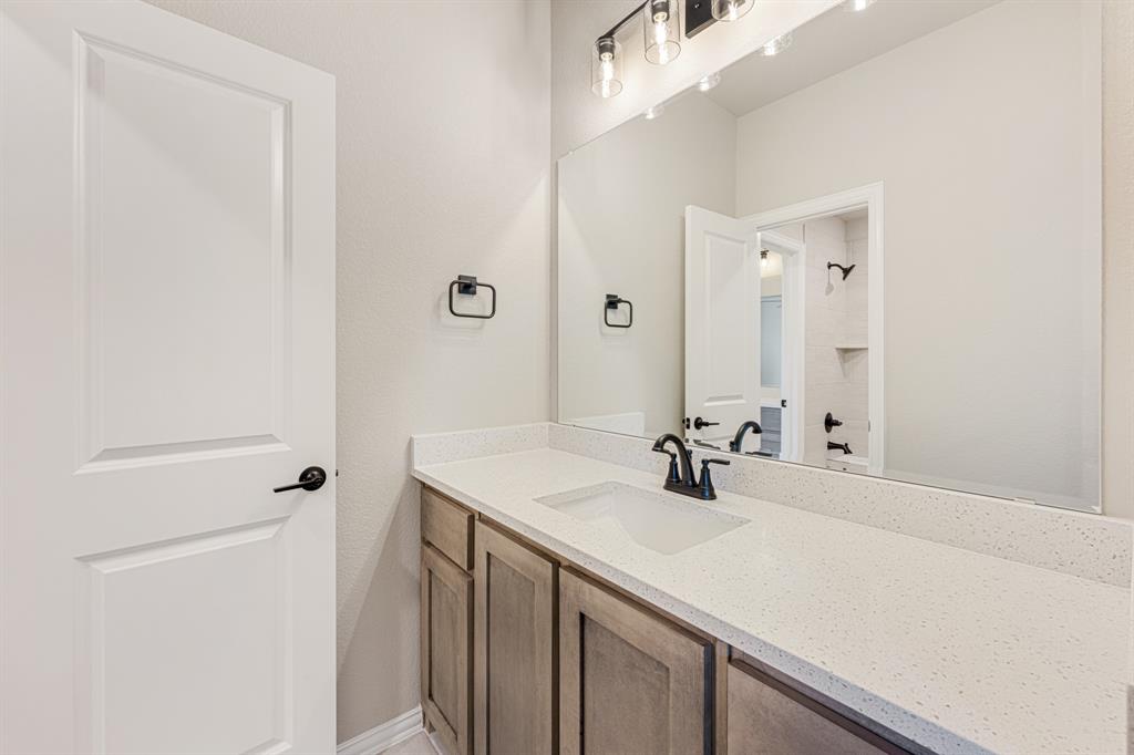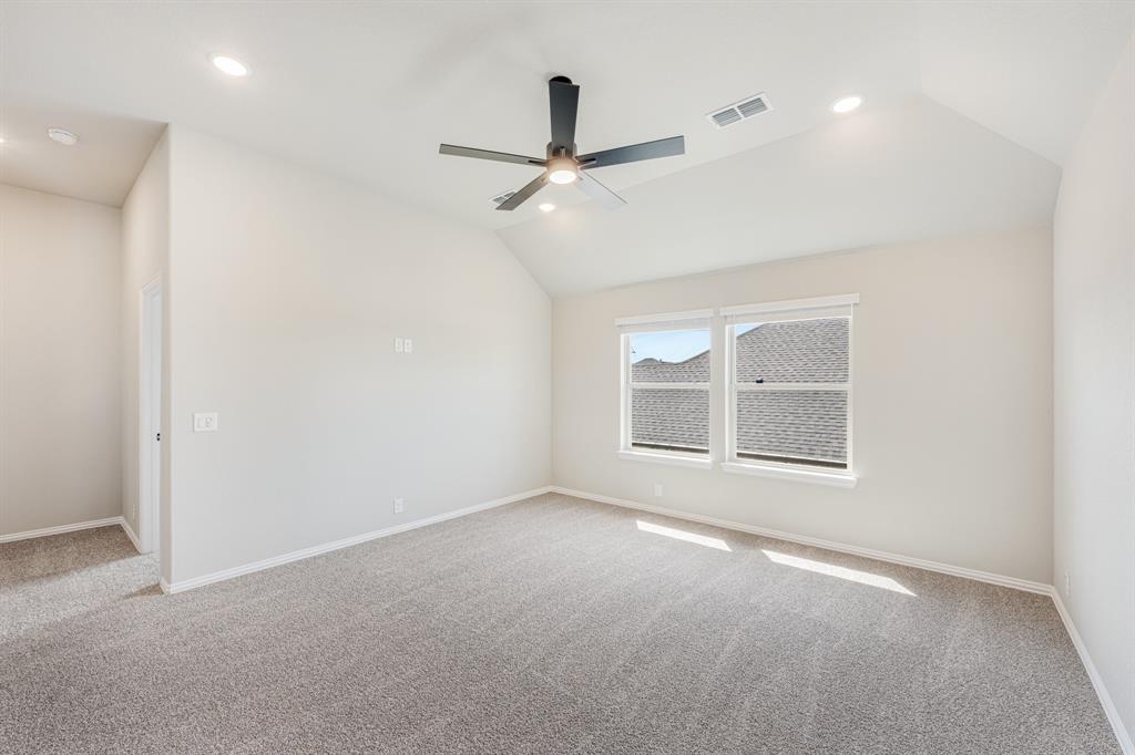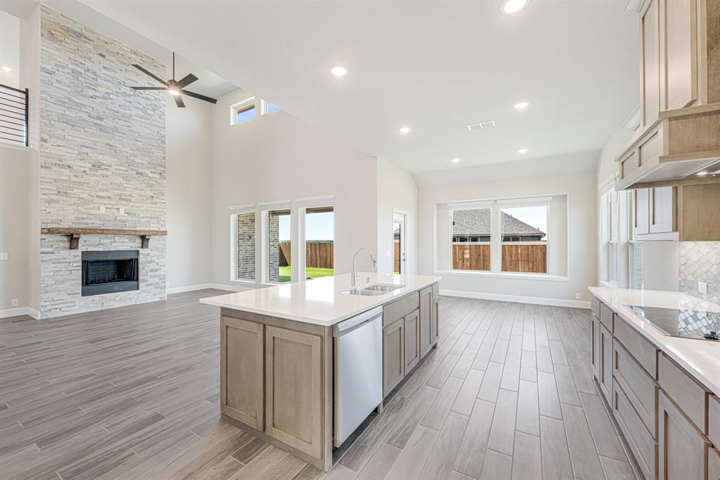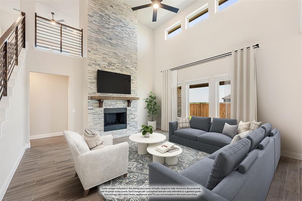 BRAND NEW & NEVER LIVED IN BEFORE! Move-In Ready NOW. Bloomfield Homes' Seaberry floor plan is a stunning two-story home on an interior lot with a stylish J-swing garage and a generously sized yard, offering 5 spacious bedrooms and 4 baths. The open foyer welcomes you with an elegant Formal Dining area and a private Study enclosed by glass French doors, while a glass pantry door and open horizontal railing add subtle sophistication to the design. A Butler’s Pantry provides seamless access to the Deluxe Kitchen—an elevated culinary space featuring upgraded cabinetry, Quartz counters, pot and pan drawers beneath the cooktop, under-cabinet lighting, a pull-out trash bin, and a striking wood vent hood over all-electric stainless steel appliances including a Double Oven. This chef’s dream flows effortlessly into the expansive Family Room, where soaring 18’ vaulted ceilings, picture windows, and a dramatic Stone-to-Ceiling Fireplace with a cedar mantel create a warm yet refined ambiance. Throughout the downstairs, upgraded Tile floors extend across all common areas, enhanced by upgraded carpet in the bedrooms for added comfort. The Primary Suite is a serene retreat with a drop-in deck mount tub, separate shower, and roomy L-shaped vanity, while thoughtful additions like window coverings, a nearby mud room with added function, and blinds throughout elevate daily living. Upstairs, a spacious Game Room ensures plenty of entertainment space for family and guests. The home’s stately brick and stone façade is further enhanced by cedar garage doors, a bricked front porch, and an 8' custom front door, while double flood lights, uplights, full gutters, and exterior lighting add curb appeal and security. A 10x17 extended patio completes this exceptional design, combining luxury, comfort, and functionality in perfect harmony. Call or visit today!