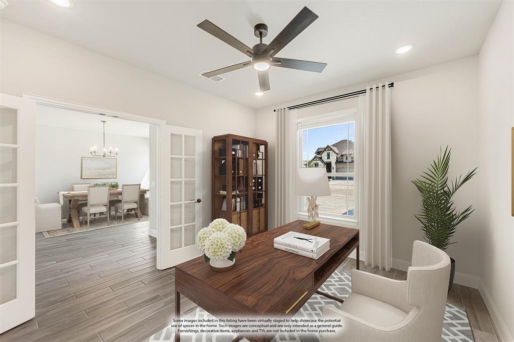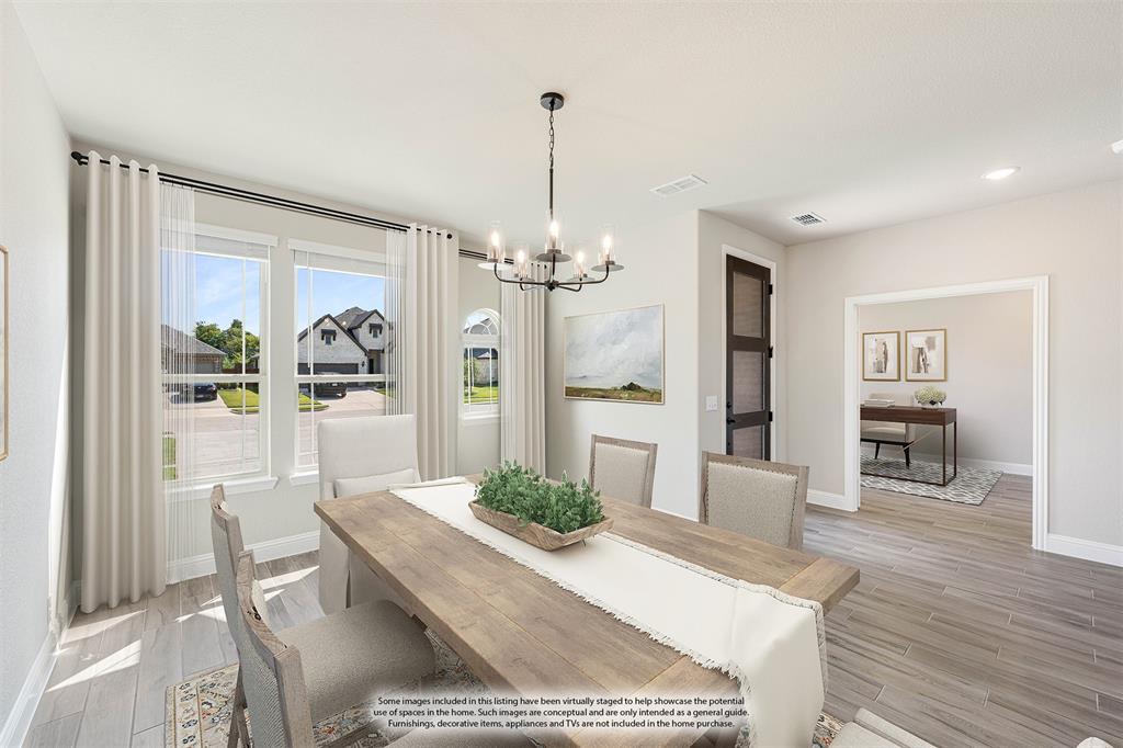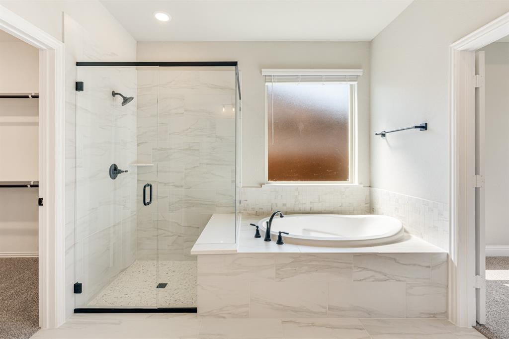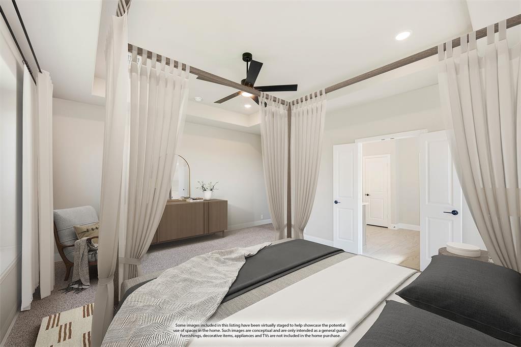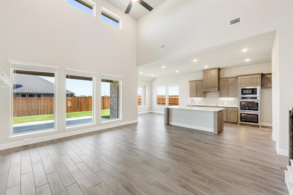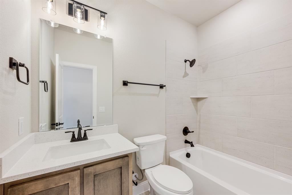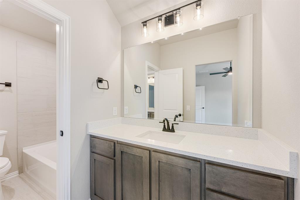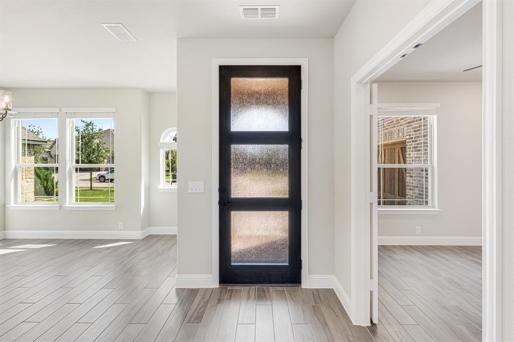 BRAND NEW & NEVER LIVED IN BEFORE! Move-In Ready NOW. Bloomfield Homes' Seaberry floor plan is a stunning two-story home on an interior lot with a stylish J-swing garage and a generously sized yard, offering 5 spacious bedrooms and 4 baths. The open foyer welcomes you with an elegant Formal Dining area and a private Study enclosed by glass French doors, while a glass pantry door and open horizontal railing add subtle sophistication to the design. A Butler’s Pantry provides seamless access to the Deluxe Kitchen—an elevated culinary space featuring upgraded cabinetry, Quartz counters, pot and pan drawers beneath the cooktop, under-cabinet lighting, a pull-out trash bin, and a striking wood vent hood over all-electric stainless steel appliances including a Double Oven. This chef’s dream flows effortlessly into the expansive Family Room, where soaring 18’ vaulted ceilings, picture windows, and a dramatic Stone-to-Ceiling Fireplace with a cedar mantel create a warm yet refined ambiance. Throughout the downstairs, upgraded Tile floors extend across all common areas, enhanced by upgraded carpet in the bedrooms for added comfort. The Primary Suite is a serene retreat with a drop-in deck mount tub, separate shower, and roomy L-shaped vanity, while thoughtful additions like window coverings, a nearby mud room with added function, and blinds throughout elevate daily living. Upstairs, a spacious Game Room ensures plenty of entertainment space for family and guests. The home’s stately brick and stone façade is further enhanced by cedar garage doors, a bricked front porch, and an 8' custom front door, while double flood lights, uplights, full gutters, and exterior lighting add curb appeal and security. A 10x17 extended patio completes this exceptional design, combining luxury, comfort, and functionality in perfect harmony. Call or visit today!