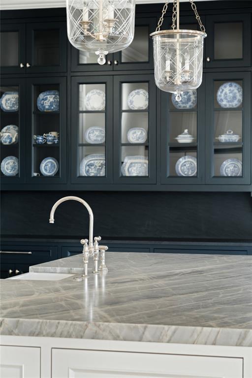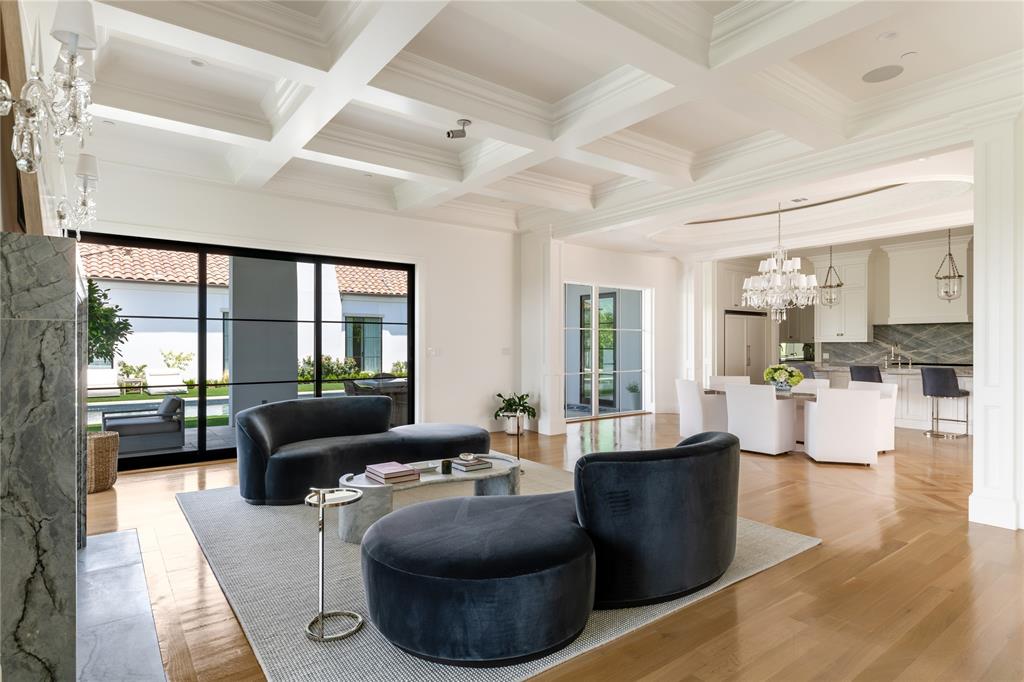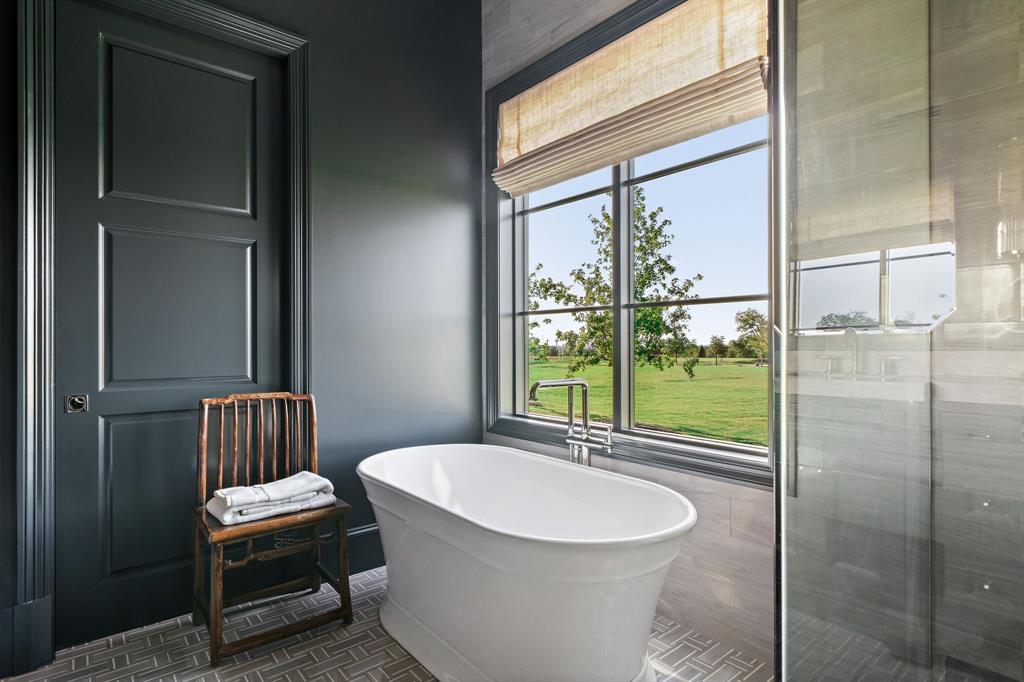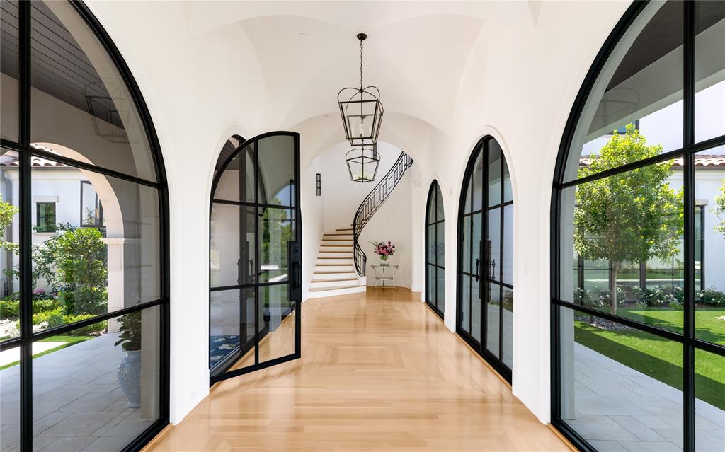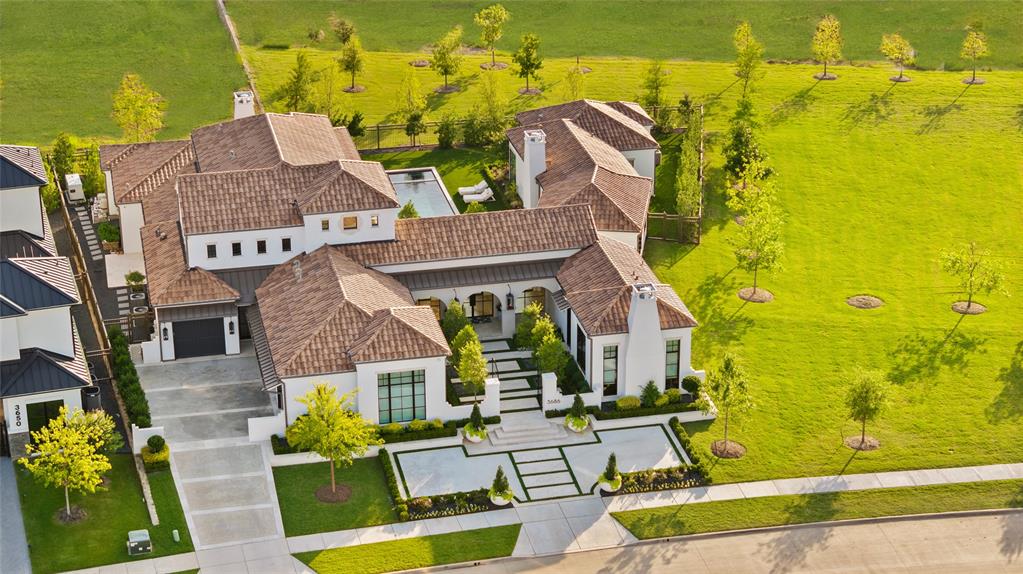 This exceptional corner-lot residence is gracefully surrounded by two acres of lush HOA green space, set deep within the prestigious guard-gated enclave of the Hills of Kingswood. Thoughtfully designed courtyards anchor both ends of the home, one offering a warm welcome, the other inviting you to stay a while. Symmetry and sophistication define the exterior. Manicured landscaping frames a pool that feels as though it glides rather than rests. The home’s east-facing orientation welcomes soft morning sun and allows natural light to pour in throughout the day, enhancing the home’s warmth and brightness. Inside, the experience unfolds through a dynamic play of light and shadow. Coffered ceilings float above paneled walls, and statement marble fireplaces casually steal your attention. Ralph Lauren lighting and Kallista bath fixtures elevate the interiors, while bespoke millwork and refined finishes speak to a level of craftsmanship rarely seen today. A standout feature of this residence is the secondary primary suite privately positioned with its own dedicated entrance. Inside, a custom fireplace sets a wonderful ambiance, complemented by a bar with built-in cooling fridge, marble clad en-suite bath, and a discreet Miele washer and dryer for effortless convenience. It’s the perfect space for long-term guests, multigenerational living, or an elevated work-from-home retreat. Smart home technology is seamlessly integrated throughout. A whole-home water filtration system, hard-wired security, a storm shelter built into the foundation slab, and a standby generator provide both comfort and confidence. The kitchen is architecturally sharp, designed with purpose and presence. Every fixture, every finish, every subtle shadow contributes to the feeling this extraordinary residence has. There’s a quiet power here. A calm rhythm. A sense that everything is exactly where it belongs.