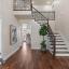 Step through elegant double doors into a welcoming foyer, featuring a modern staircase with wrought iron spindles. Decorative built-in shelves on each side of the entryway create the perfect space to showcase beautiful accent pieces and add character to the space.